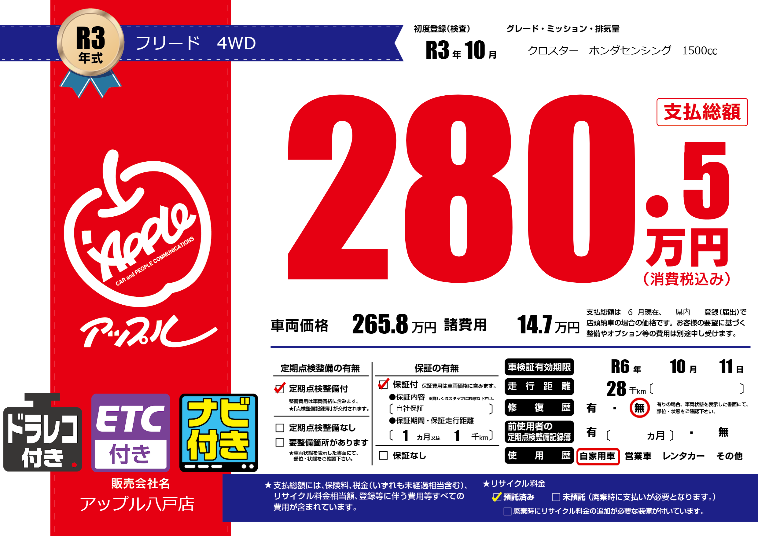 | 車検制限 | R6年 10月 11日 | ||
