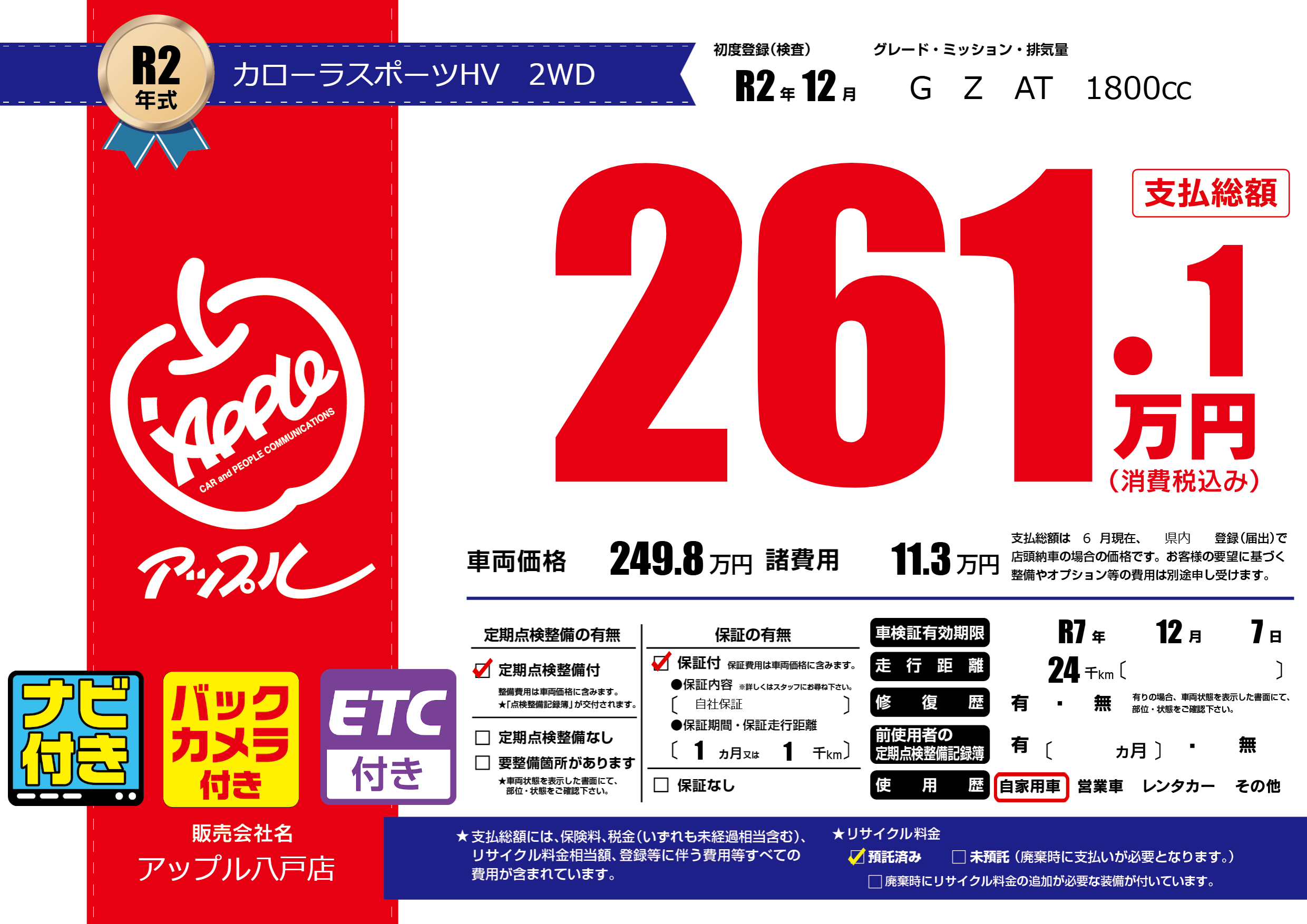 | 車検制限 | R7年 12月 7日 | ||