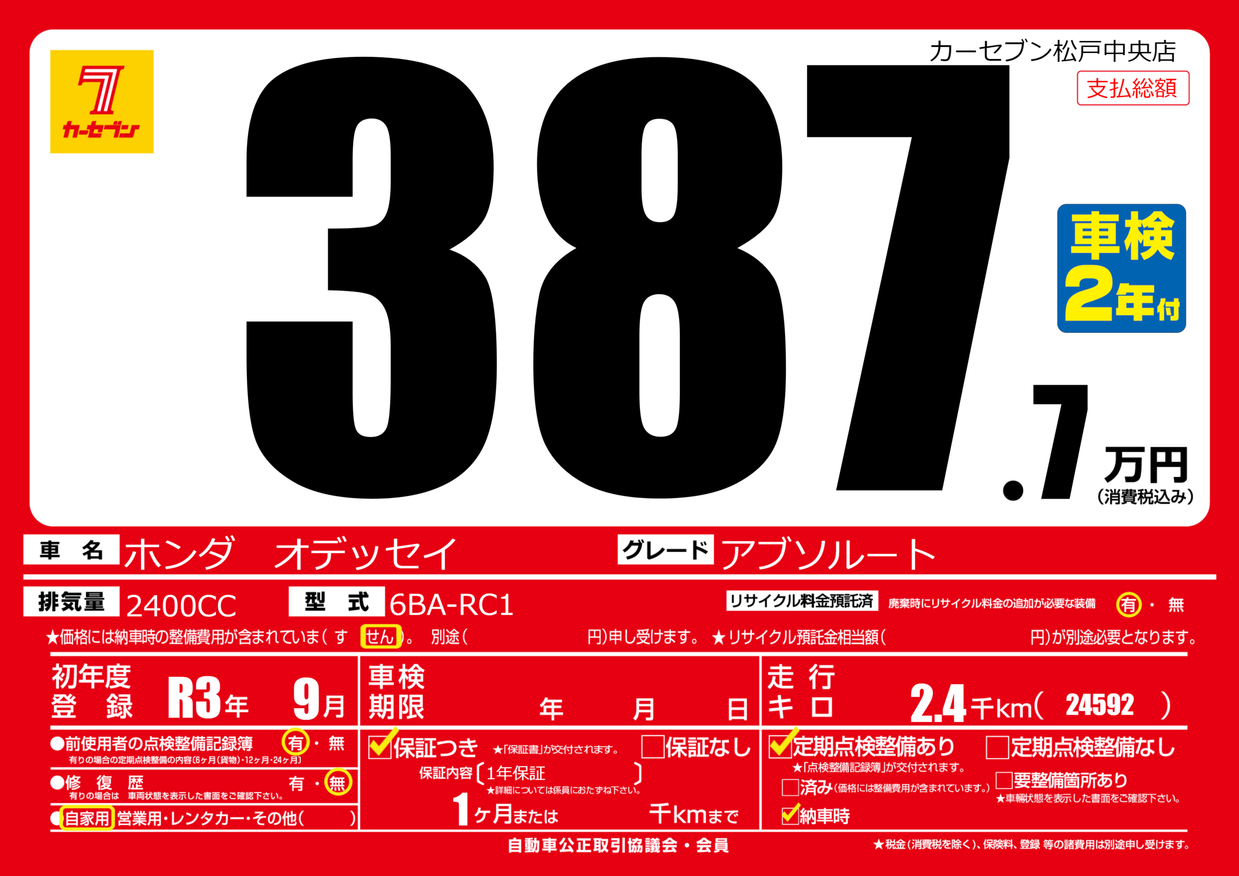 | 初年度登録 | R3年9月 | ||