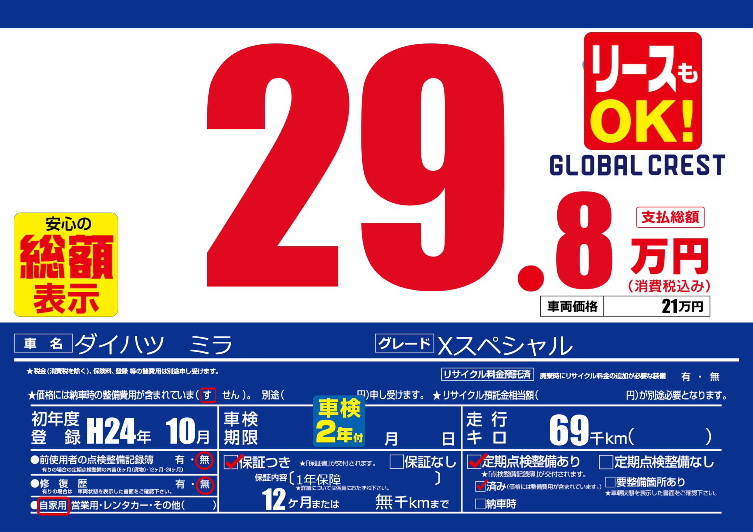 | 定期点検整備 | 定期点検整備あり 定期点検整備済み | ||