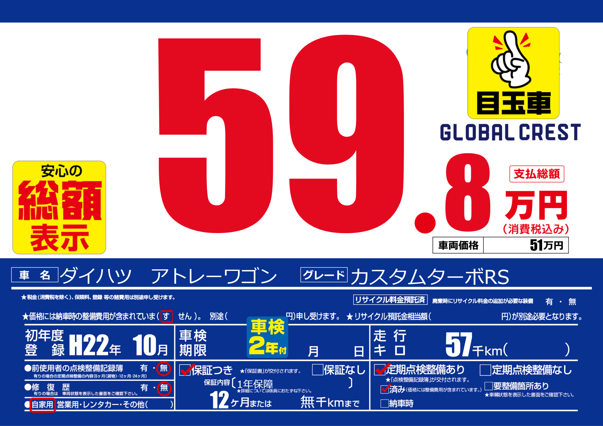 | 定期点検整備 | 定期点検整備あり 定期点検整備済み | ||