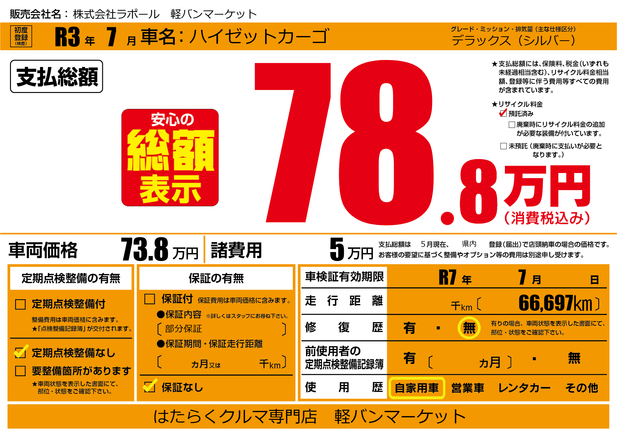 | 車検制限 | R7年 7月 - 日 | ||