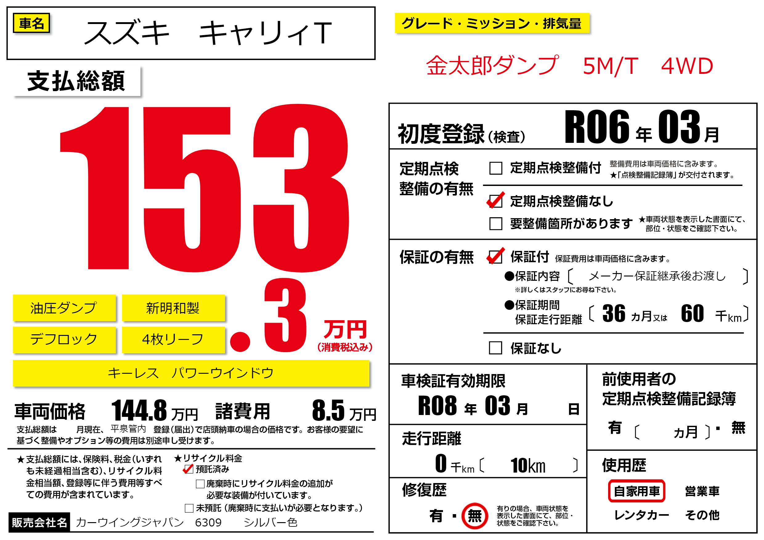 | 車検制限 | R08年 03月 - 日 | ||