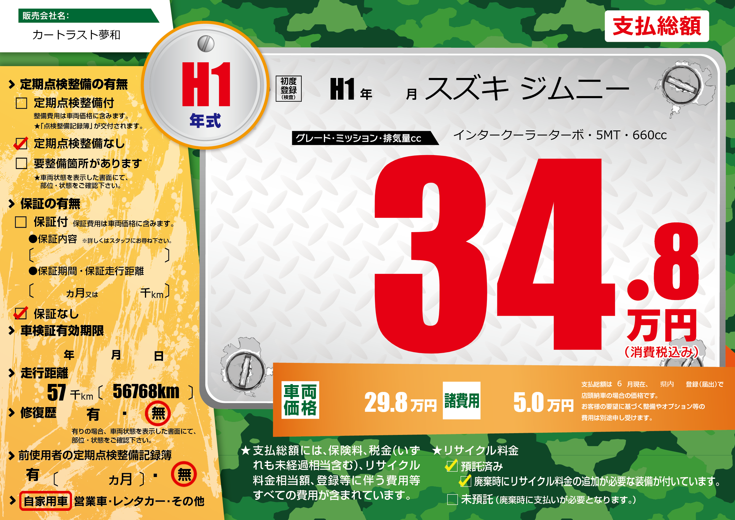 | 走行キロ | 5.7万km | 初年度登録 | H1年---月 |
