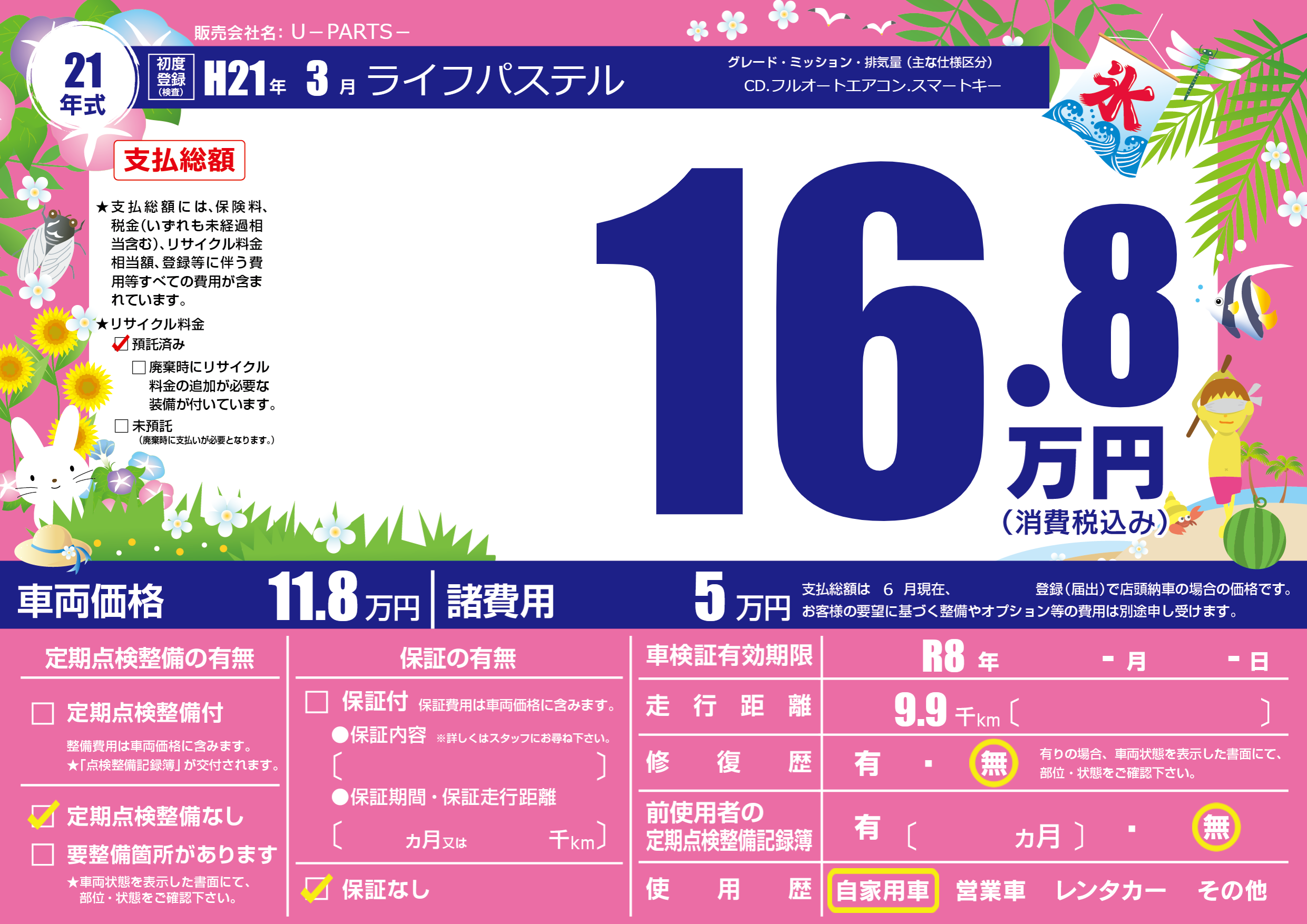 | 車名 | ライフパステル | グレード ミッション 排気量 |