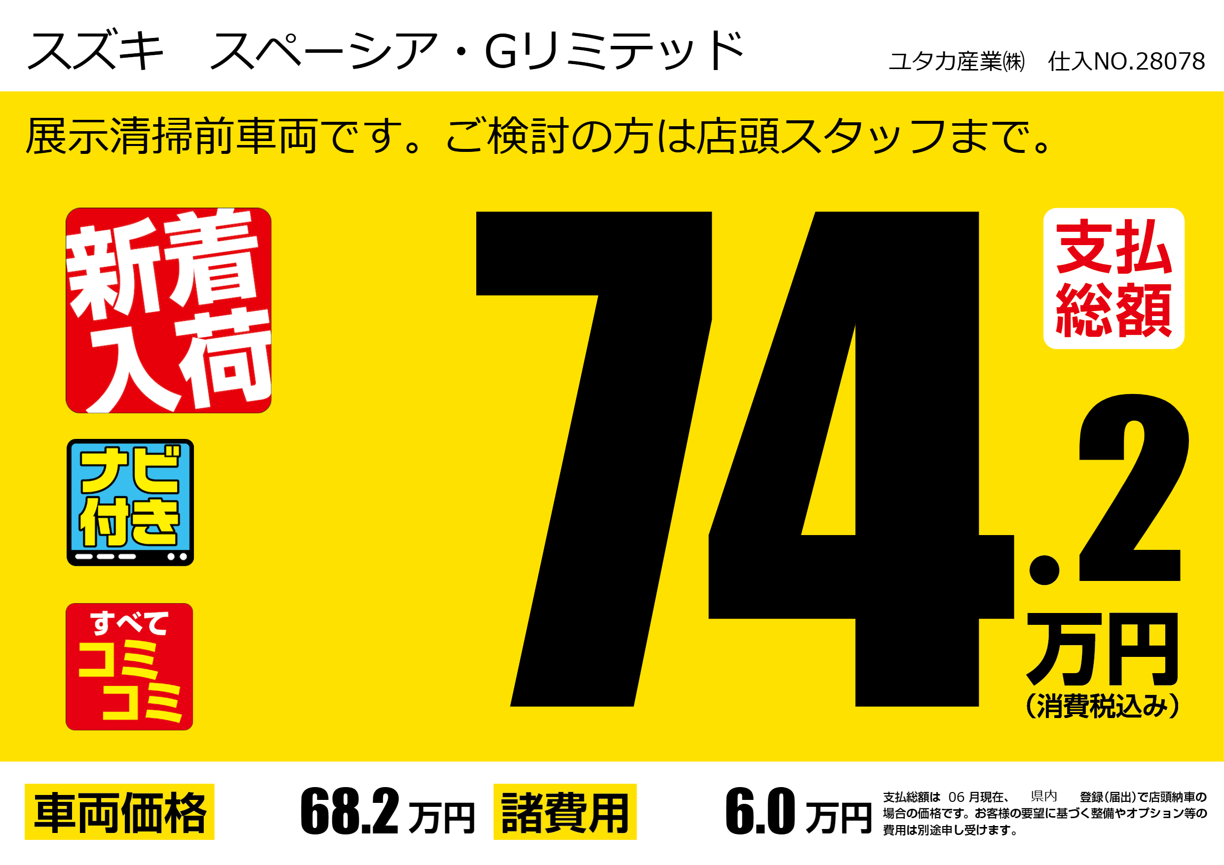 展示清掃前車両です。ご検討の方は店頭スタッフまで。 |
