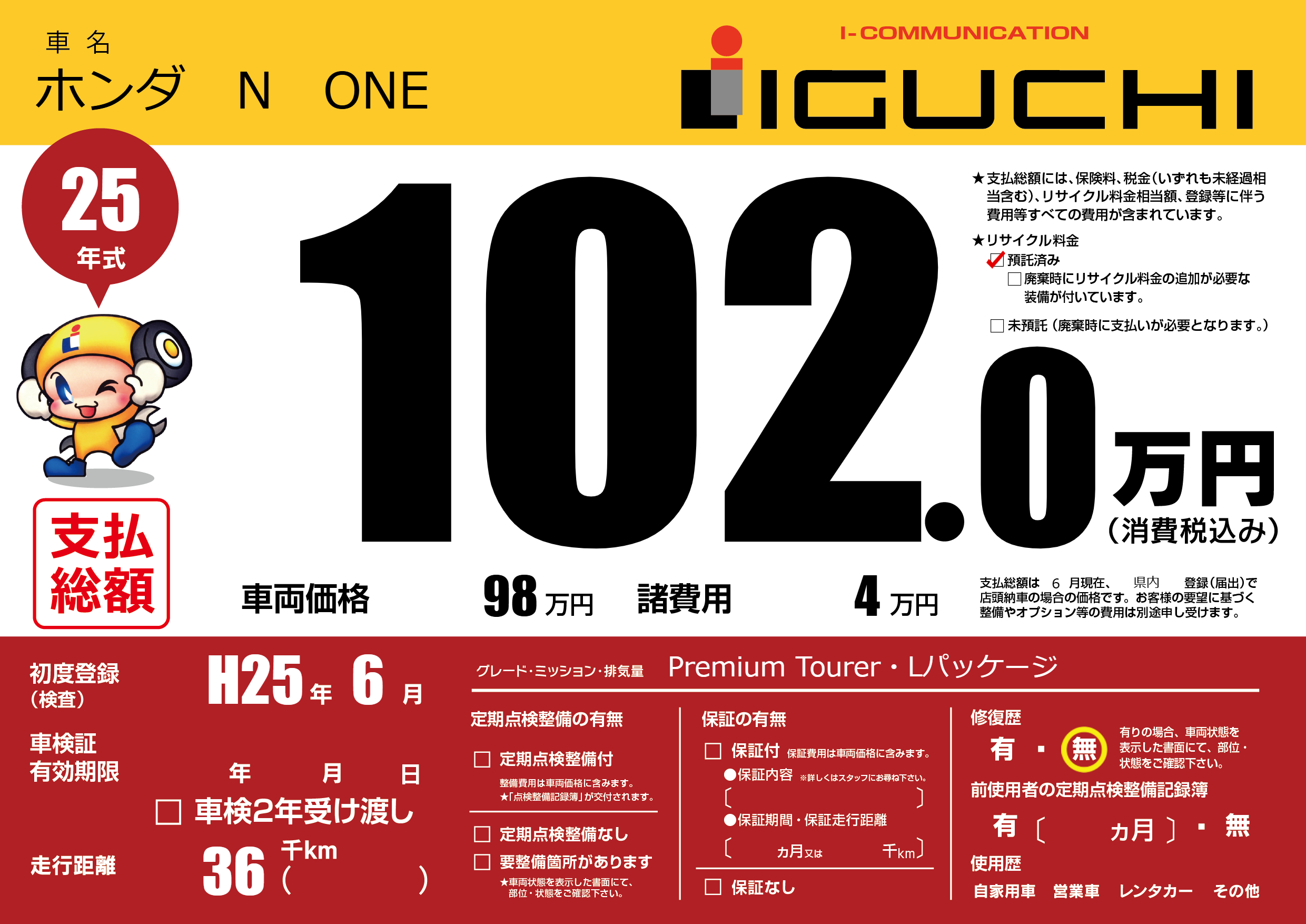 | 納車時の 整備費用 |