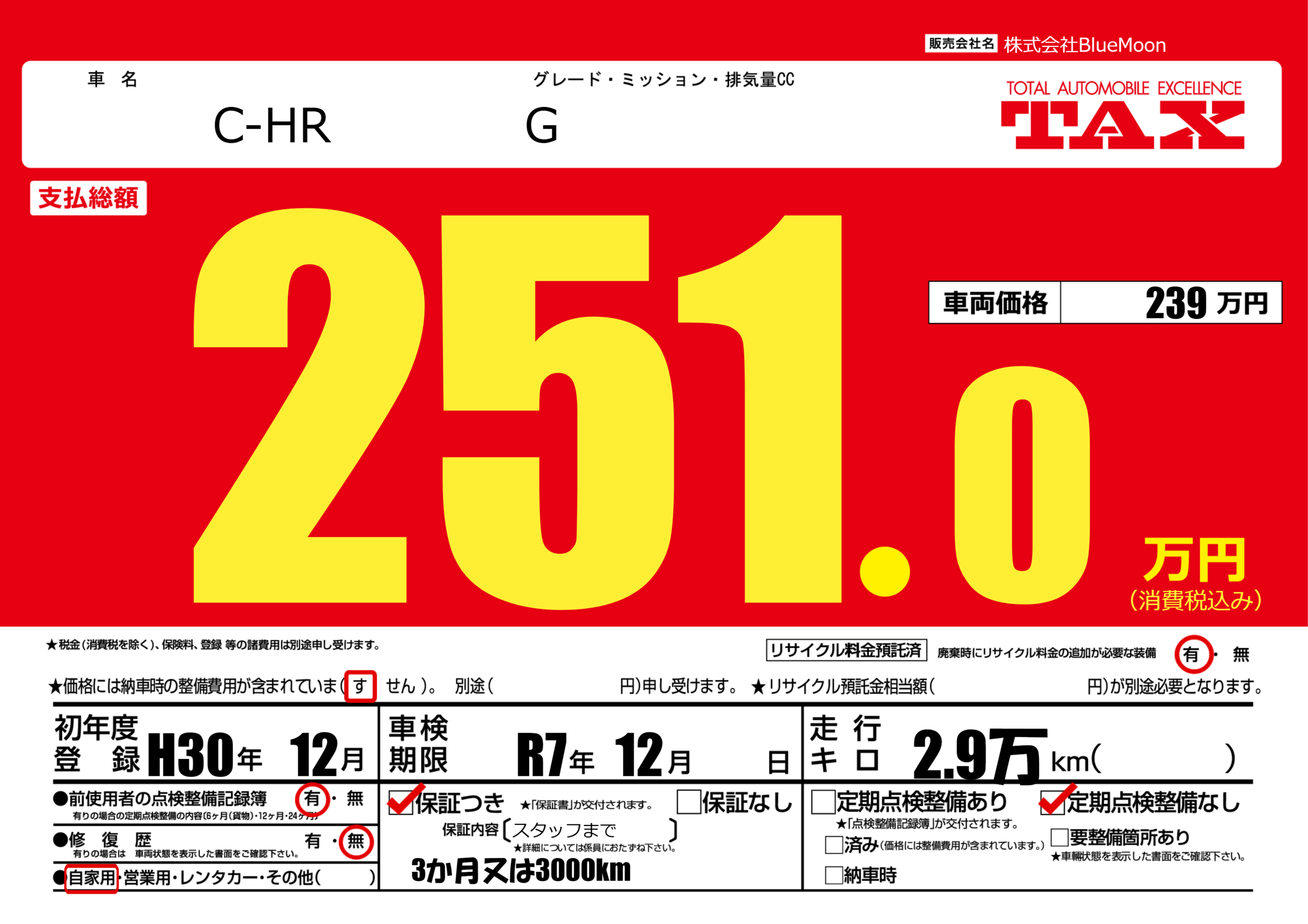| 車検制限 | R7年 12月 - 日 | ||