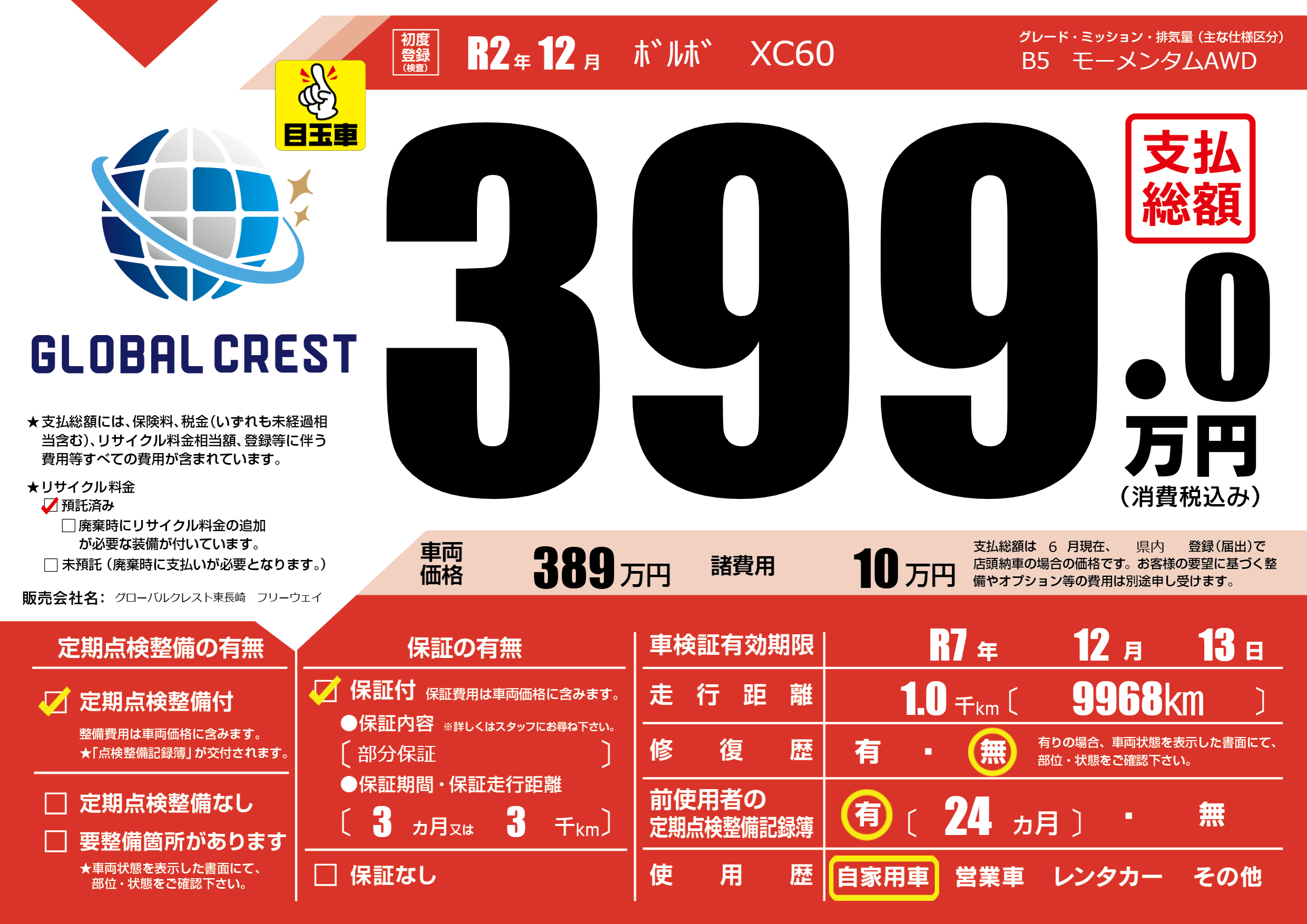 | 車名 | ボルボ XC60 | グレード ミッション 排気量 |