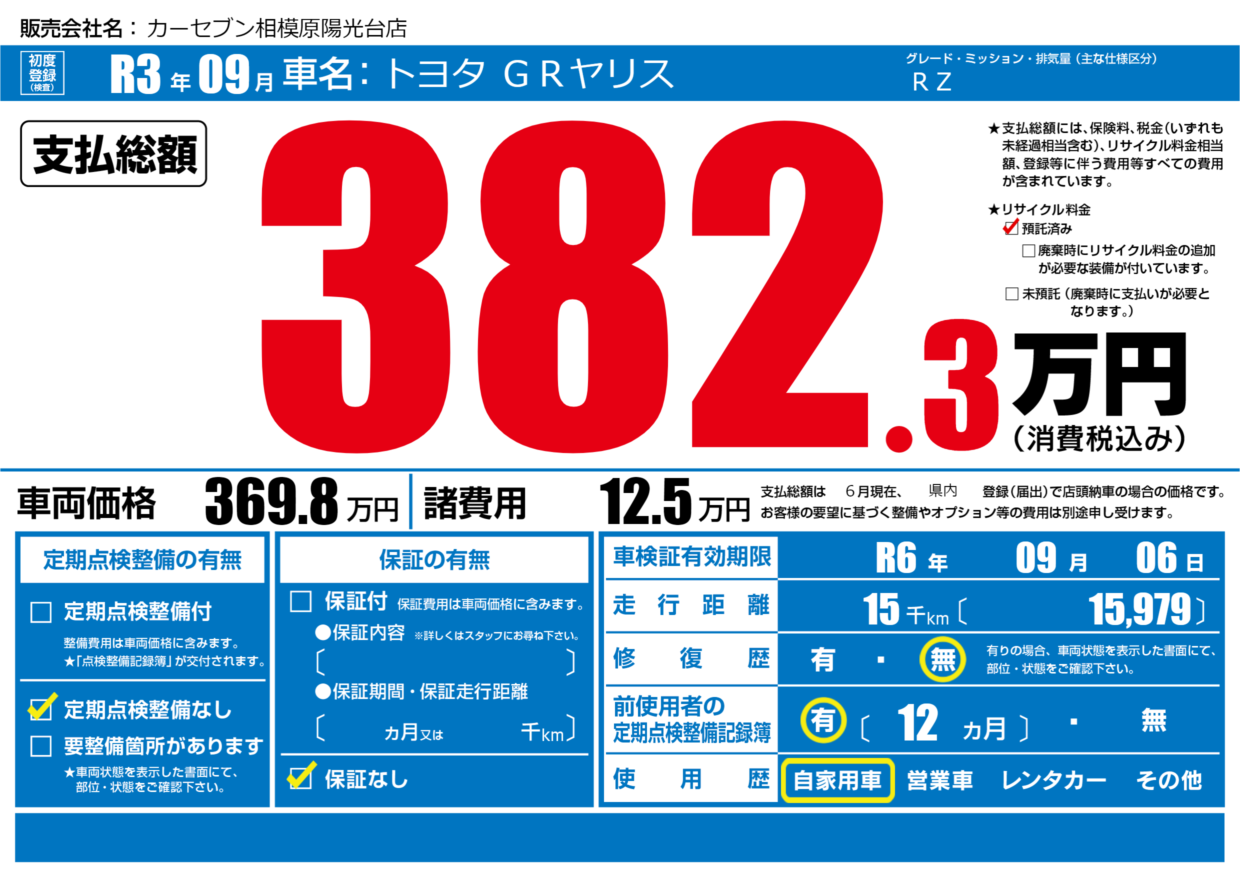 なし | 車検制限 | R6年09月06月 |