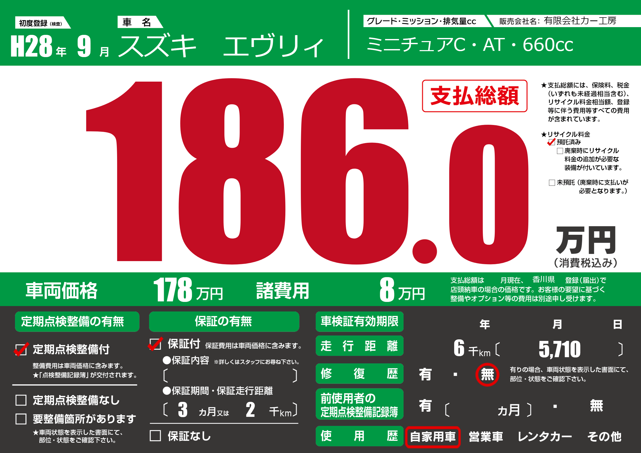 | 走行キロ | 0.6万km | 初年度登録 | H28年9月 |