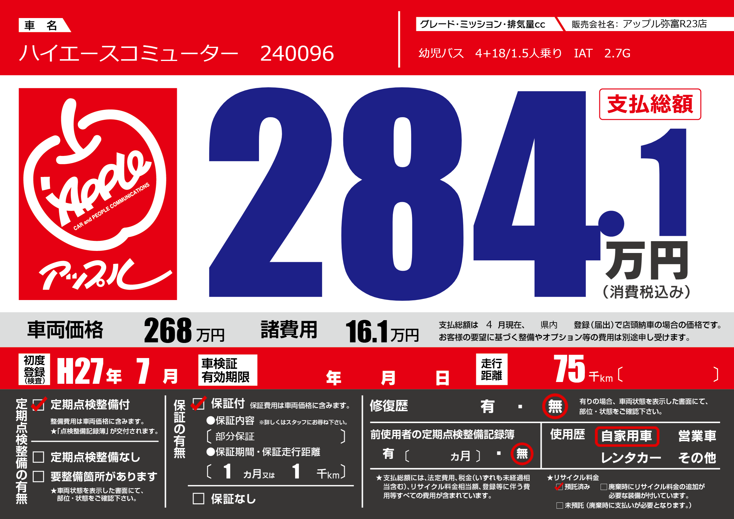 | 車名 | ハイエースコミューター 240096 | グレード ミッション 排気量 |