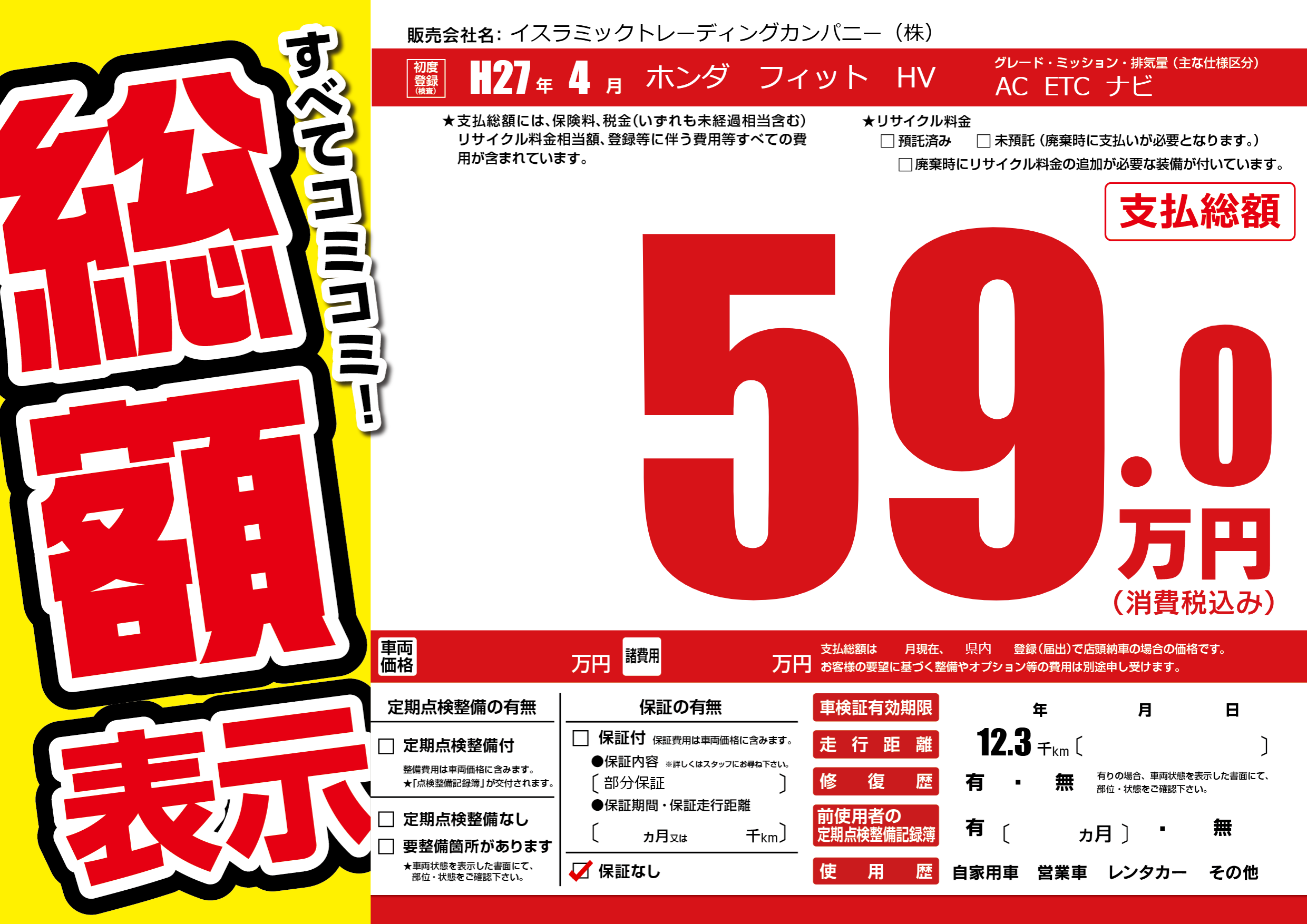 保証なし 保証内容(部分保証) ---ヶ月または()千kmまで |