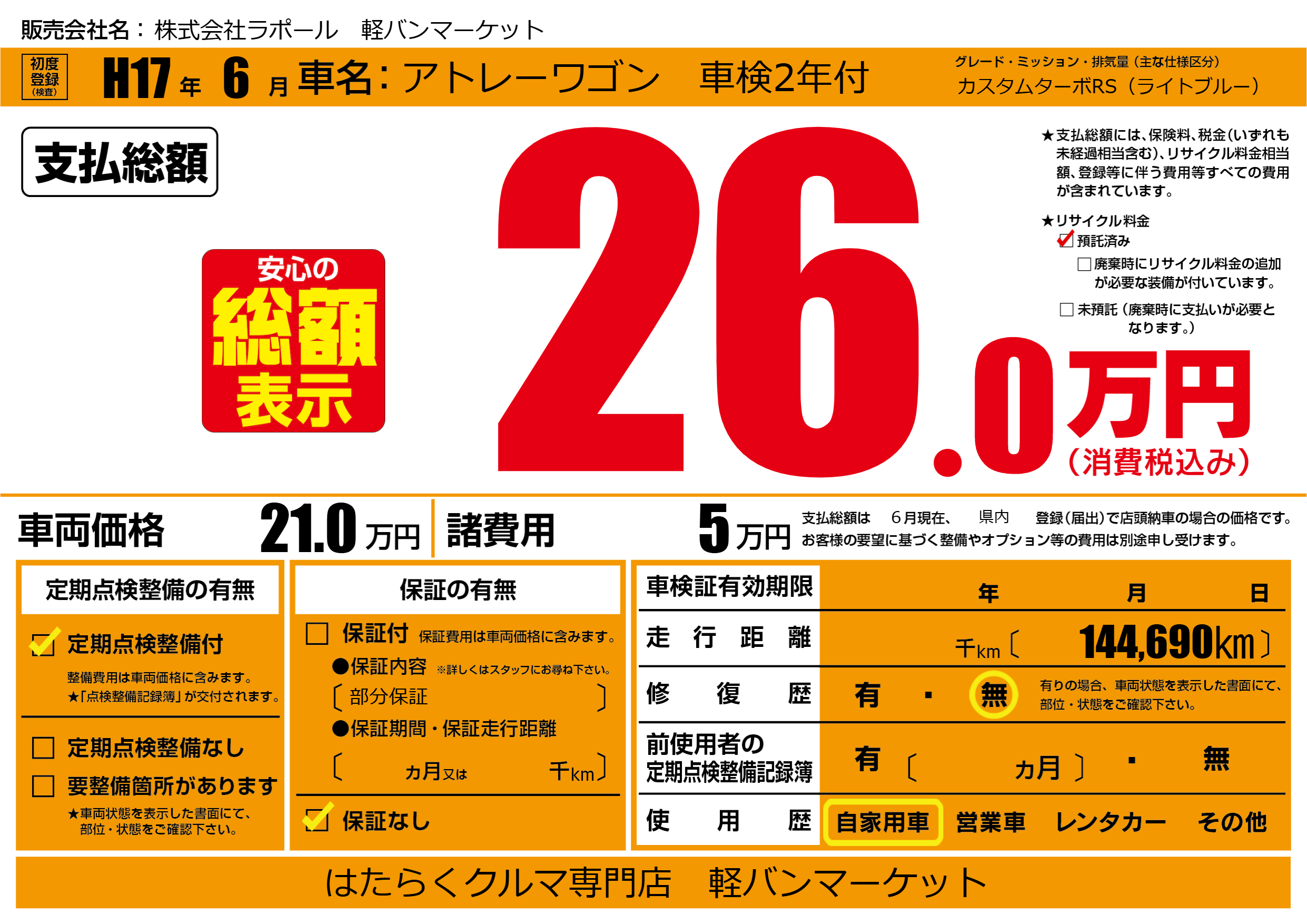 株式会社ラポール 軽バンマーケットの展示車をすべて見る