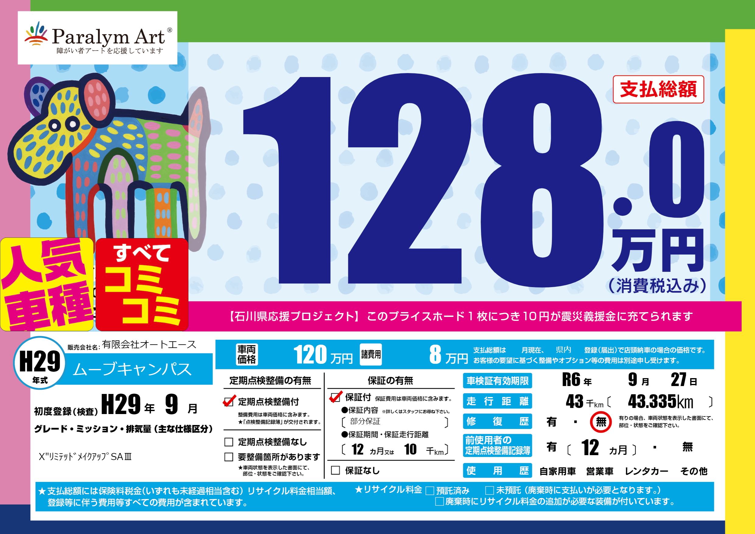 | 走行キロ | 4.3万km | 初年度登録 | H29年9月 |