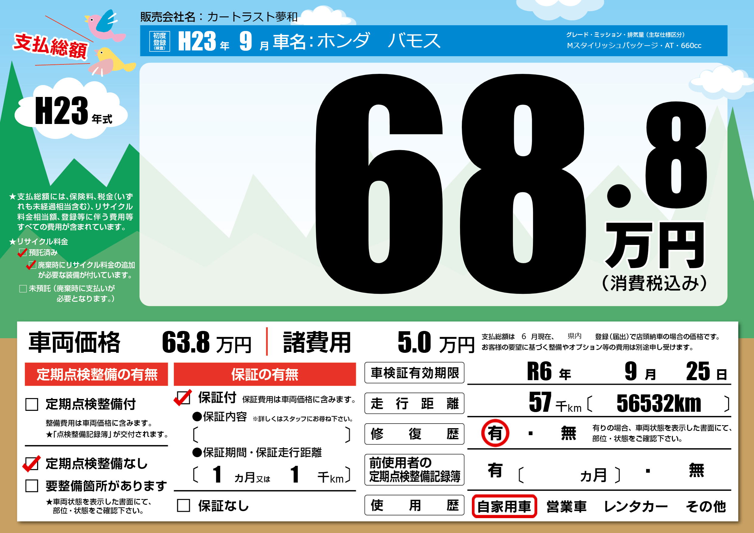 | 車名 | ホンダ バモス | グレード ミッション 排気量 |
