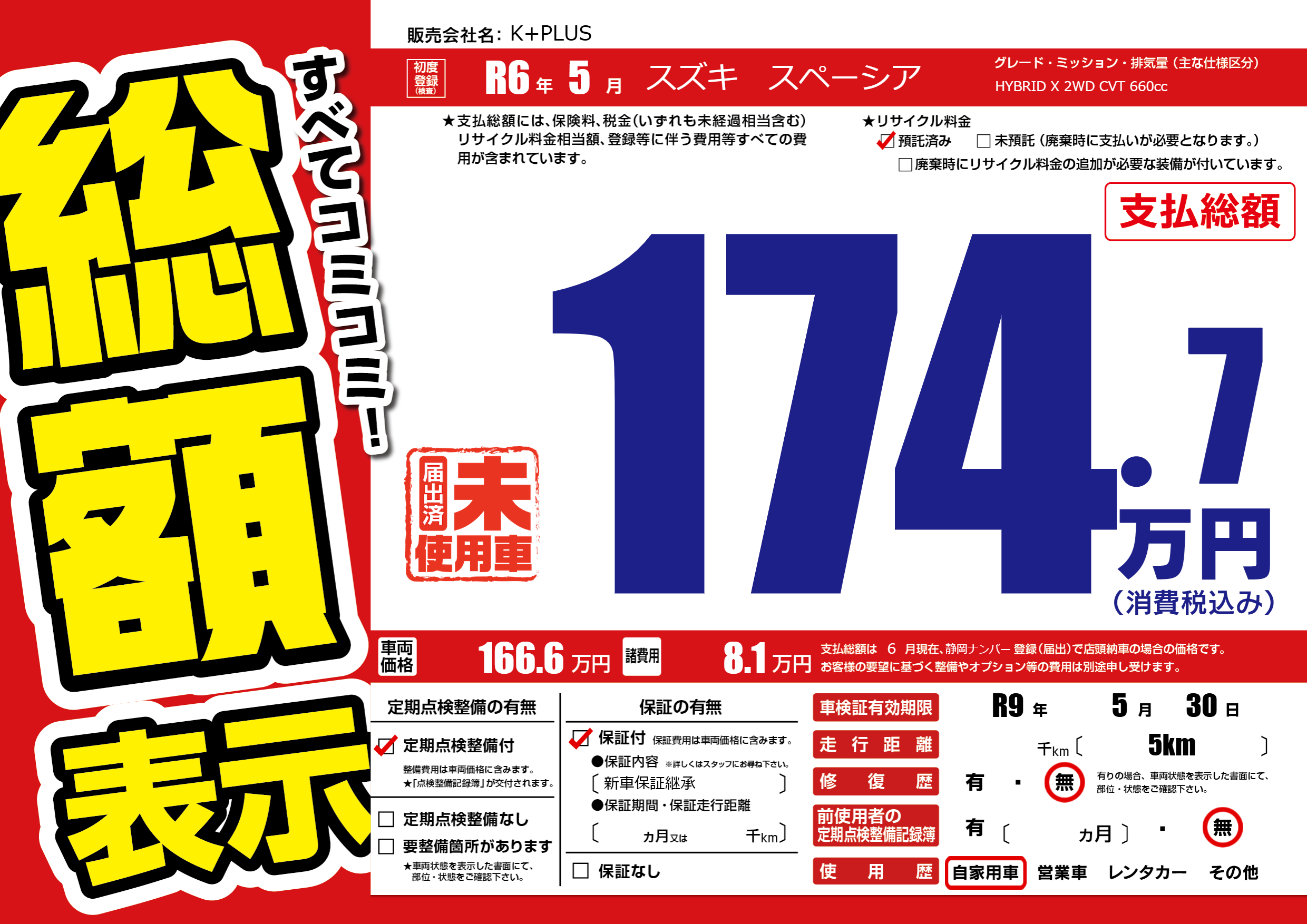 なし | 車検制限 | R9年5月30月 |