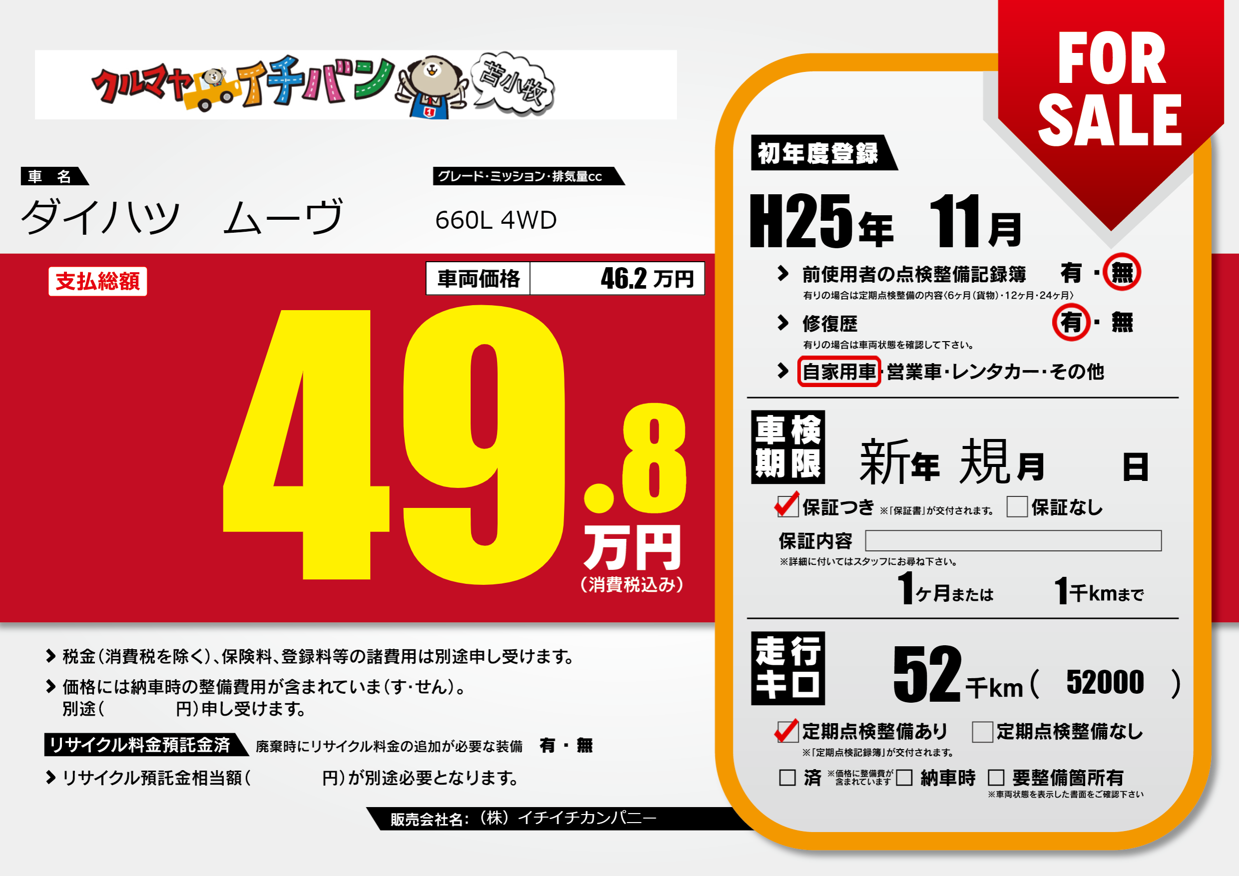 | 車名 | ダイハツ ムーヴ | グレード ミッション 排気量 |