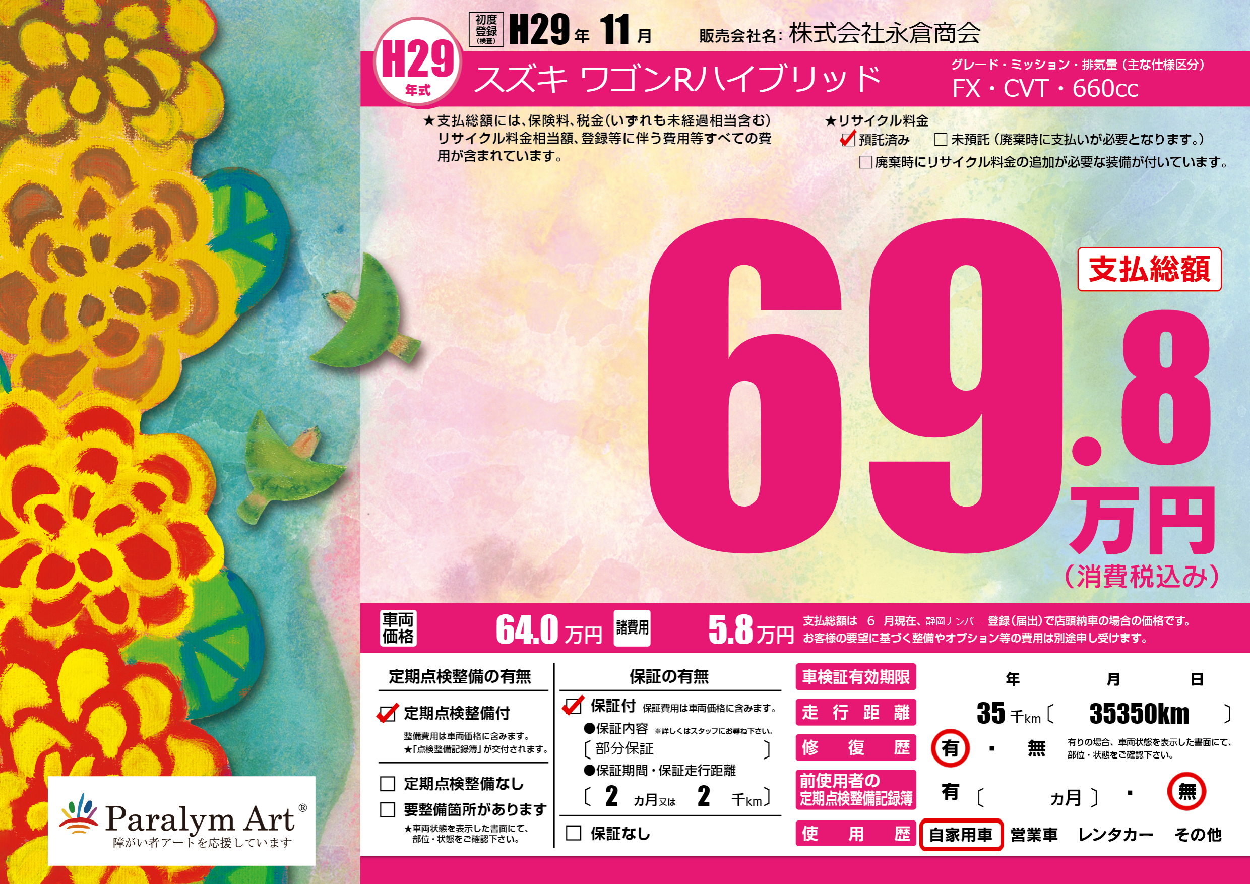 | 車名 | スズキ ワゴンRハイブリッド | グレード ミッション 排気量 |