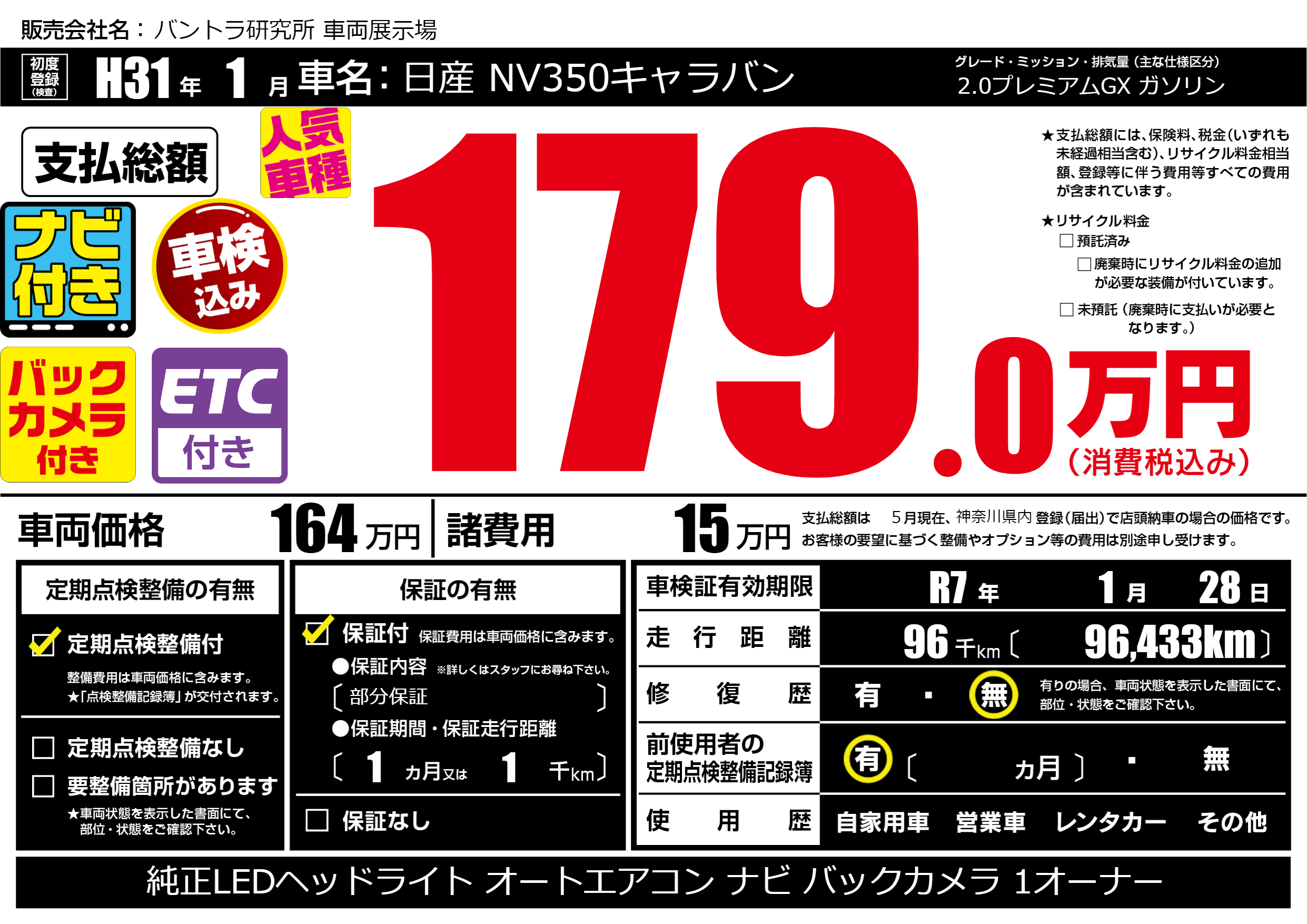 なし | 車検制限 | R7年1月28月 |