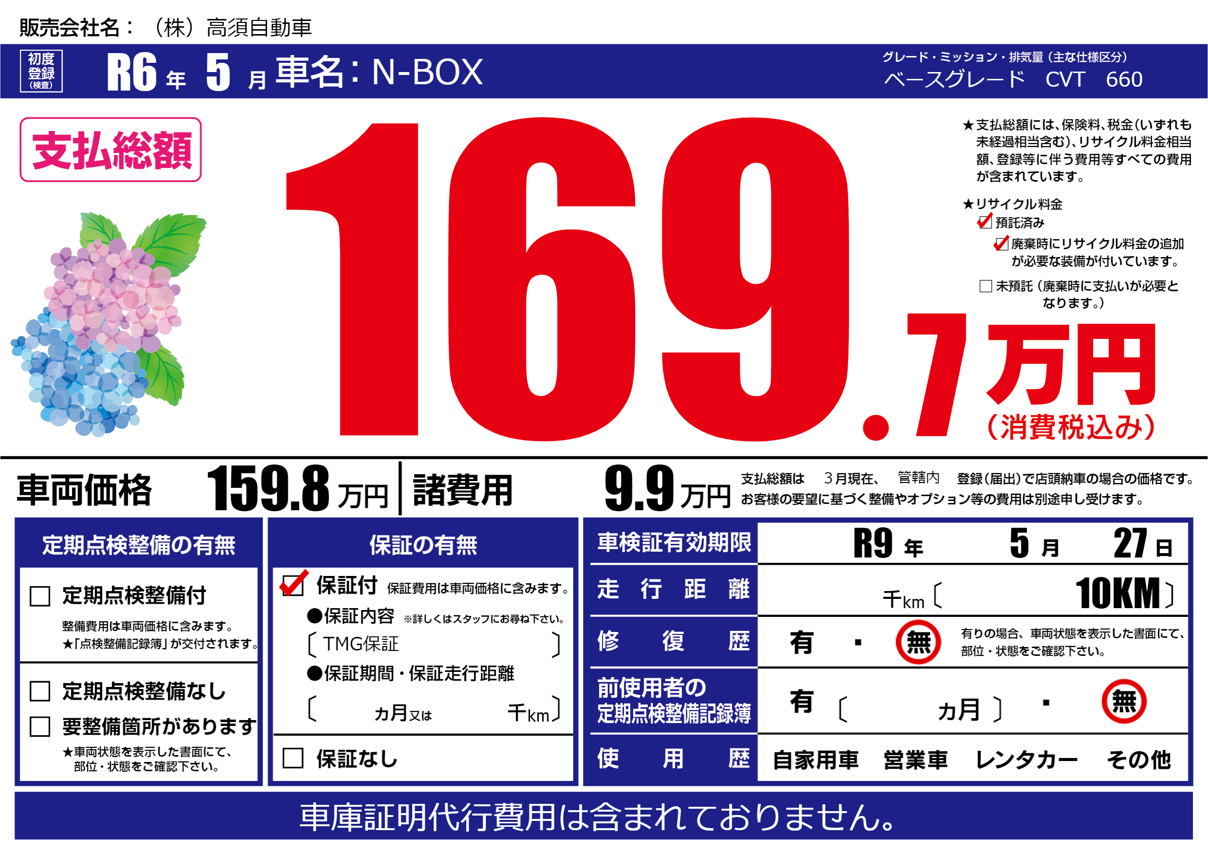 保証付き 保証内容(TMG保証) ---ヶ月または()千kmまで |