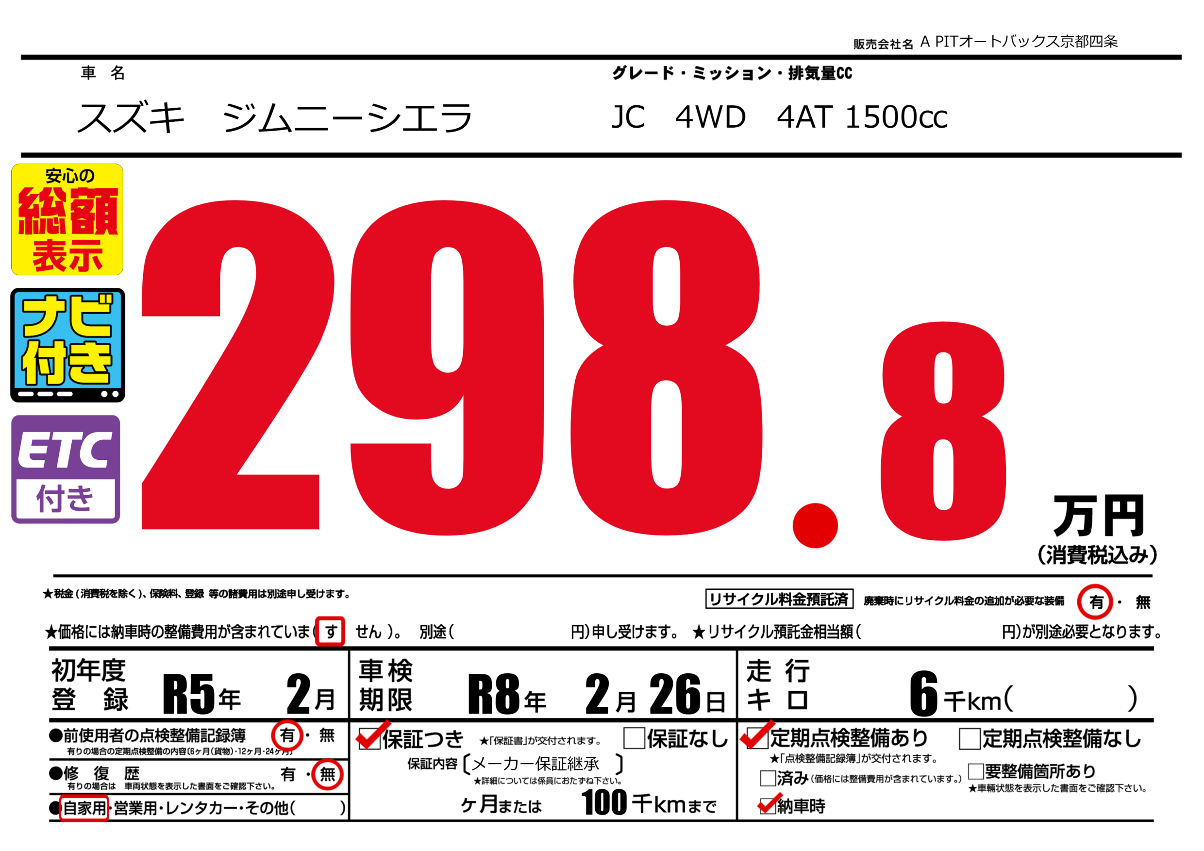 | 車検制限 | R8年 2月 26日 | ||