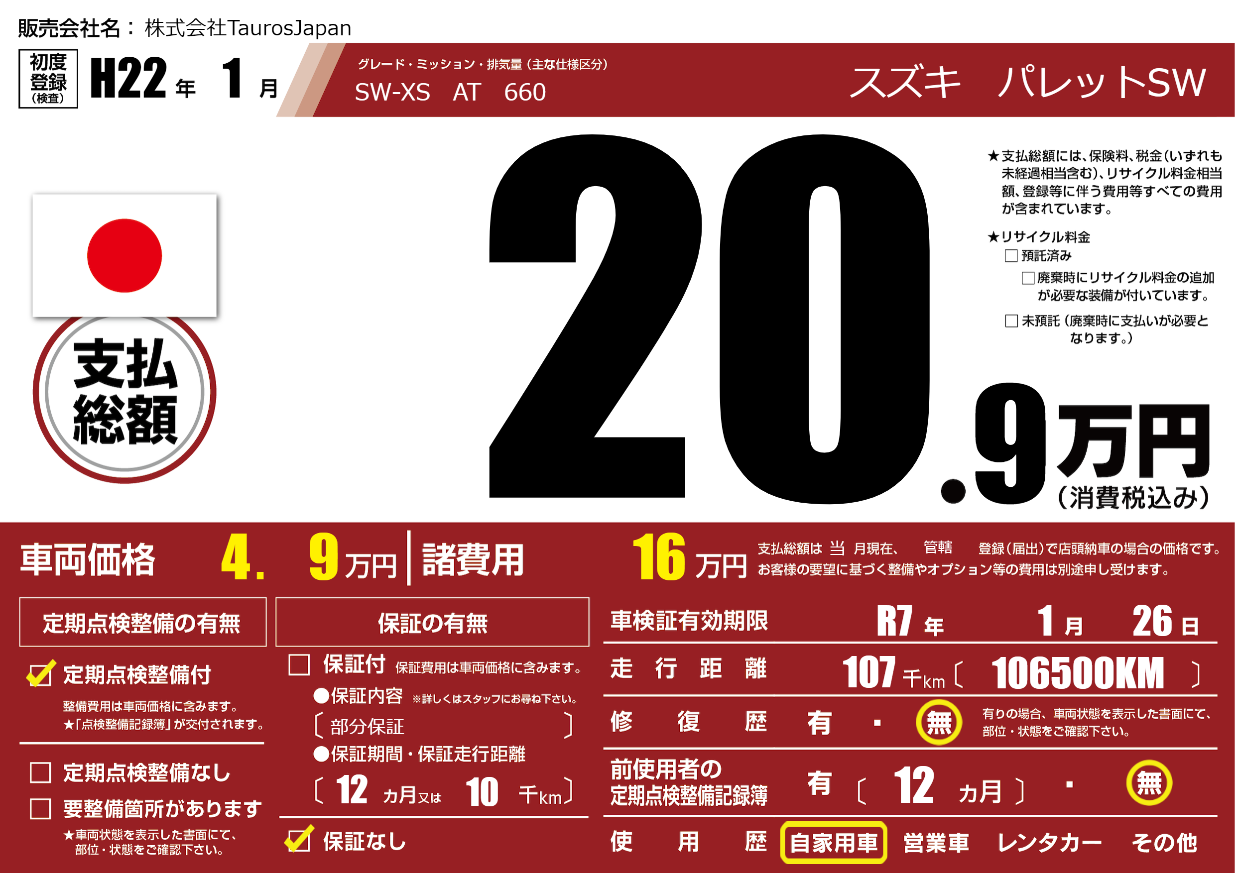 なし | 車検制限 | R7年1月26月 |