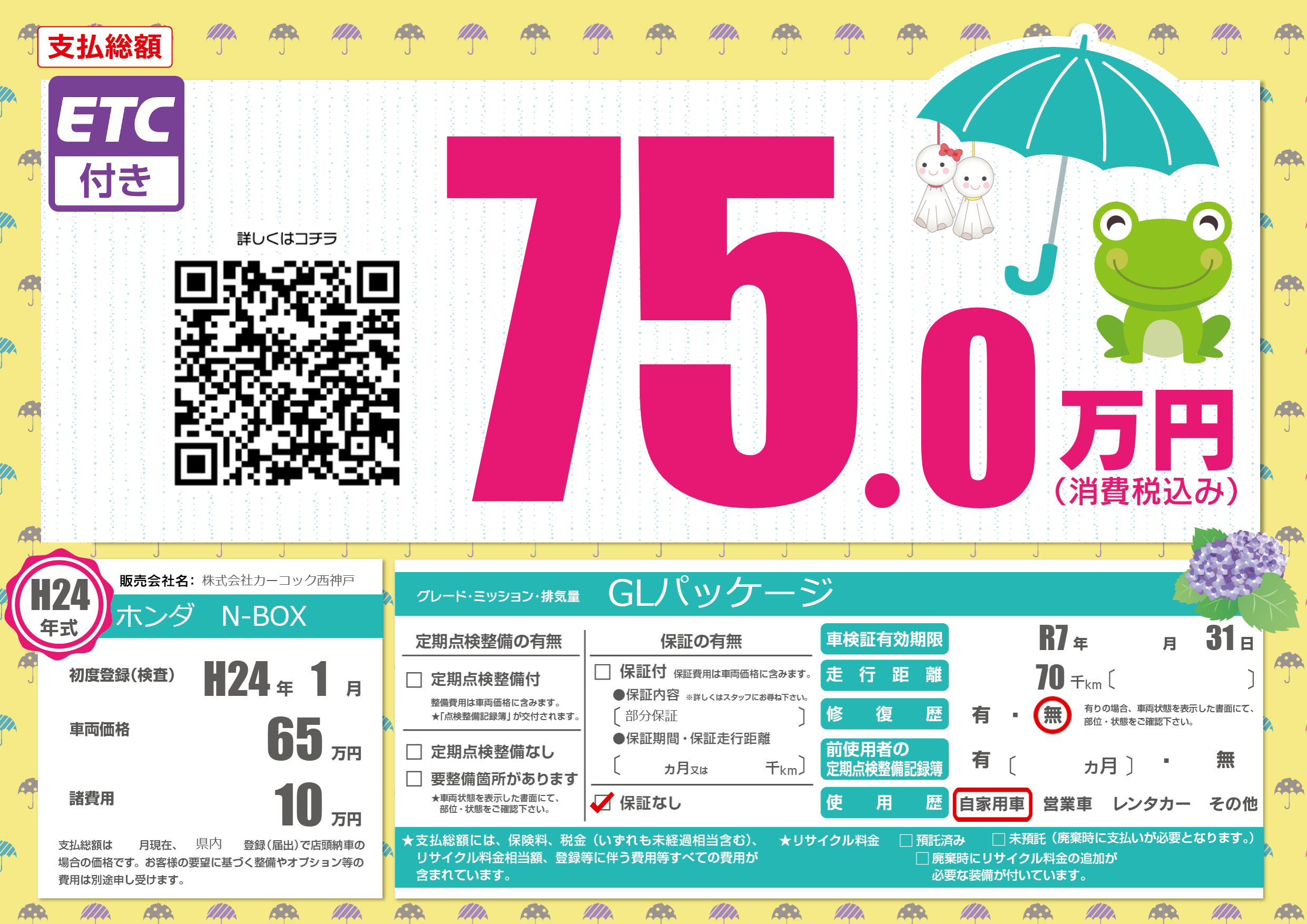 | 走行キロ | 7万km | 初年度登録 | H24年1月 |