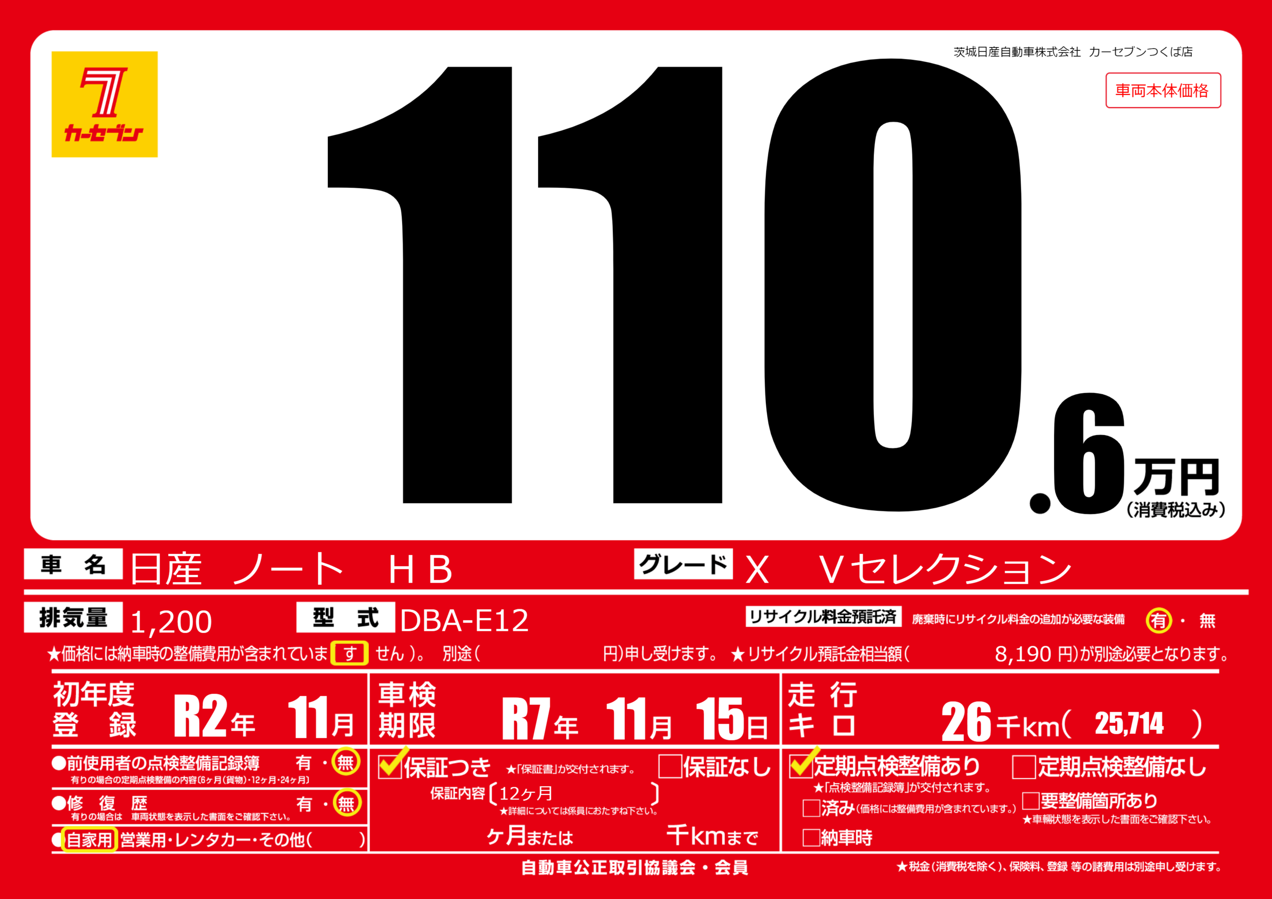 保証付き 保証内容(12ヶ月) ヶ月または千km |