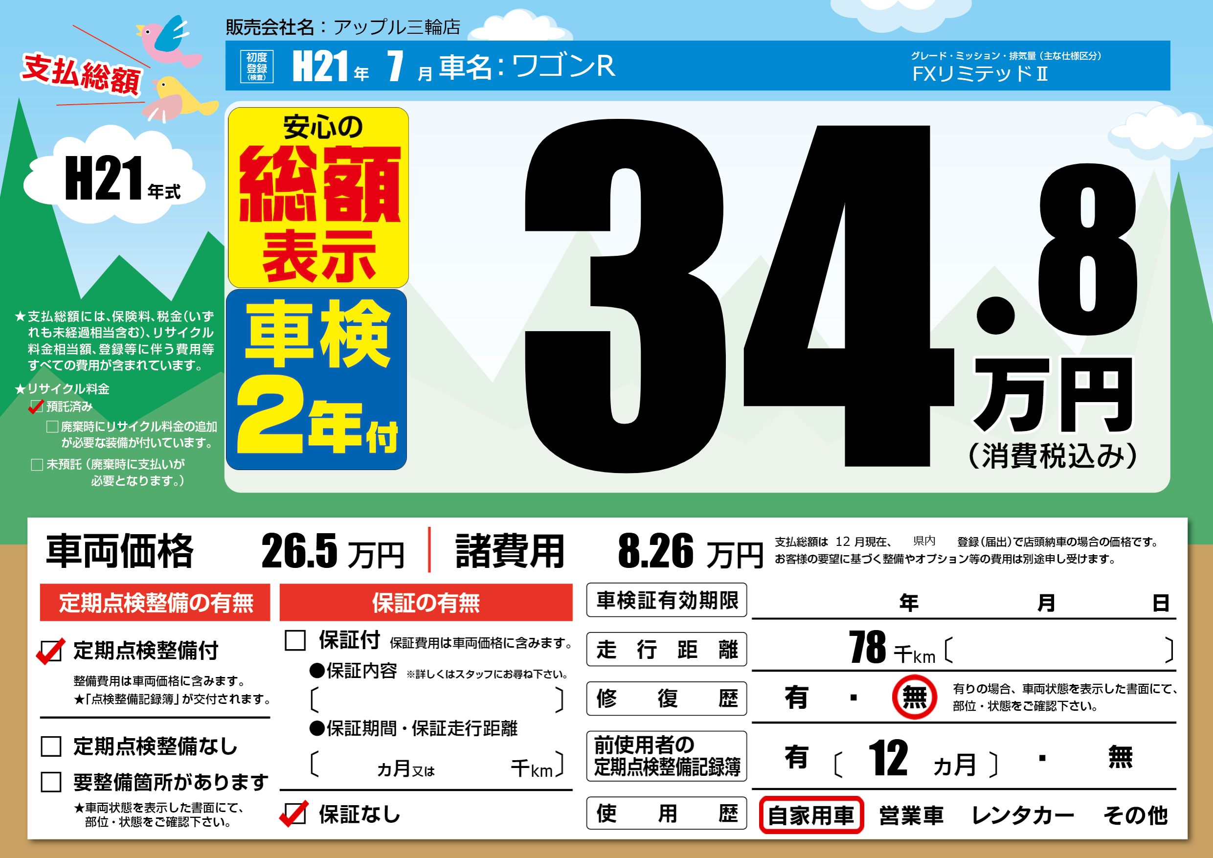 | 定期点検整備 | 定期点検整備あり | ||