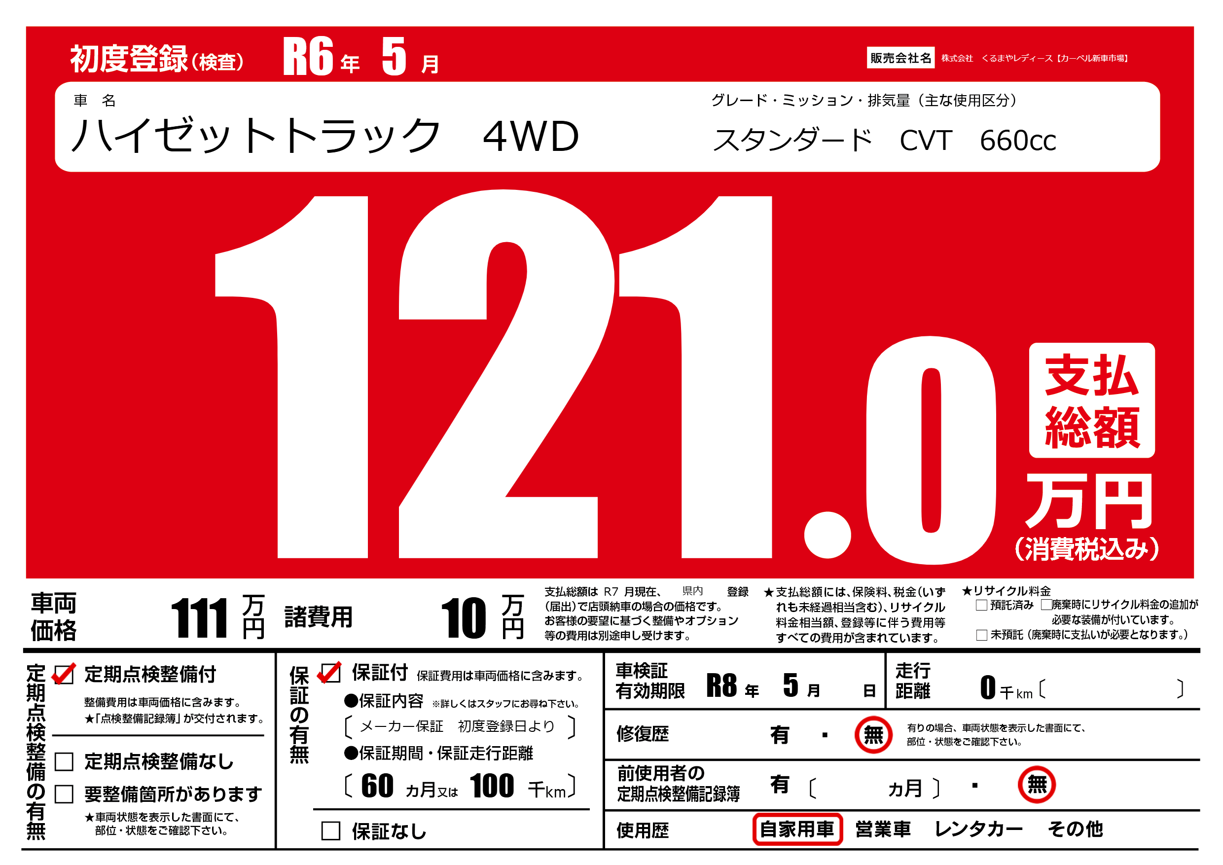 株式会社 くるまやレディース【カーベル新車市場】の展示車