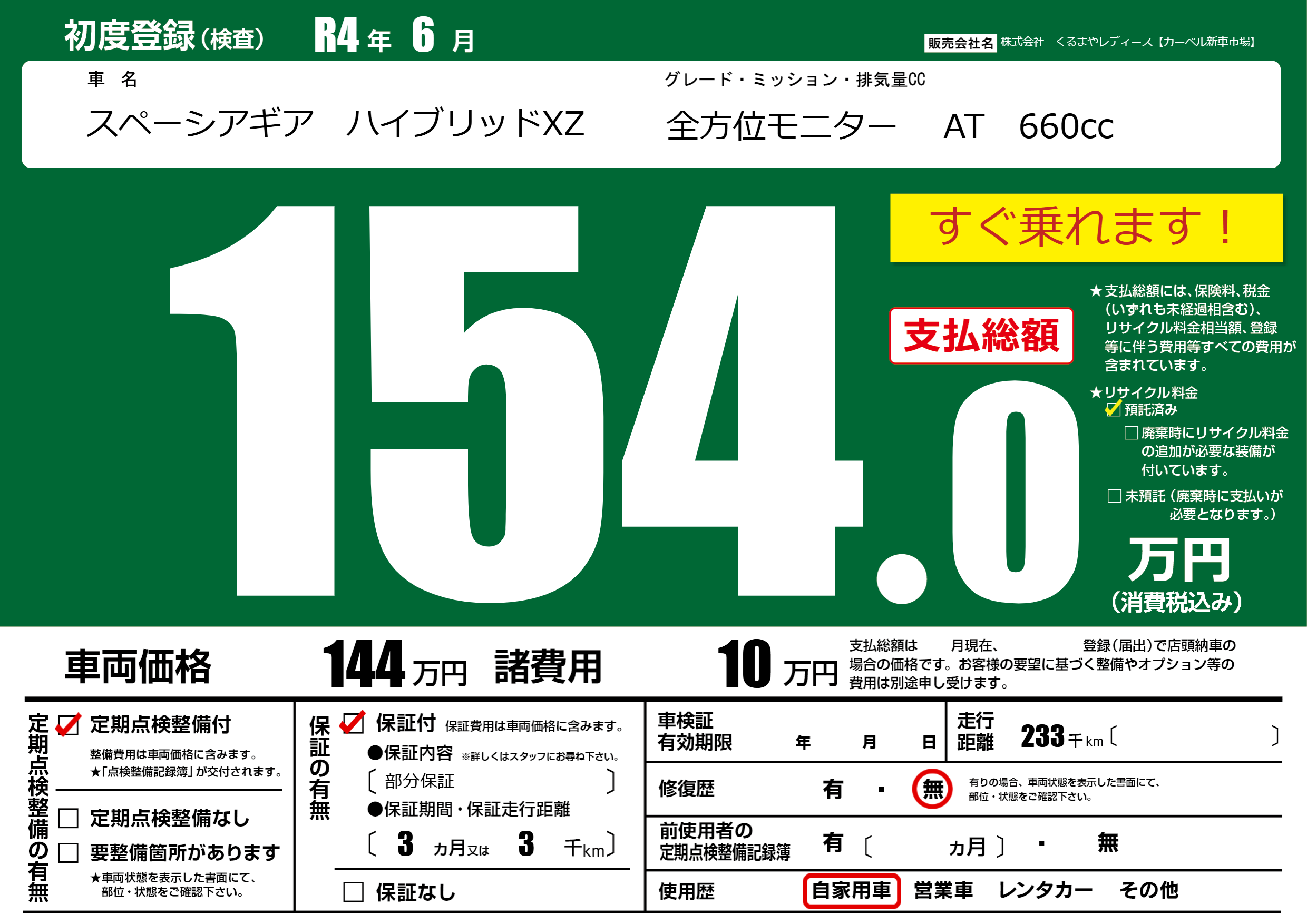 | 初年度登録 | R4年6月 | ||