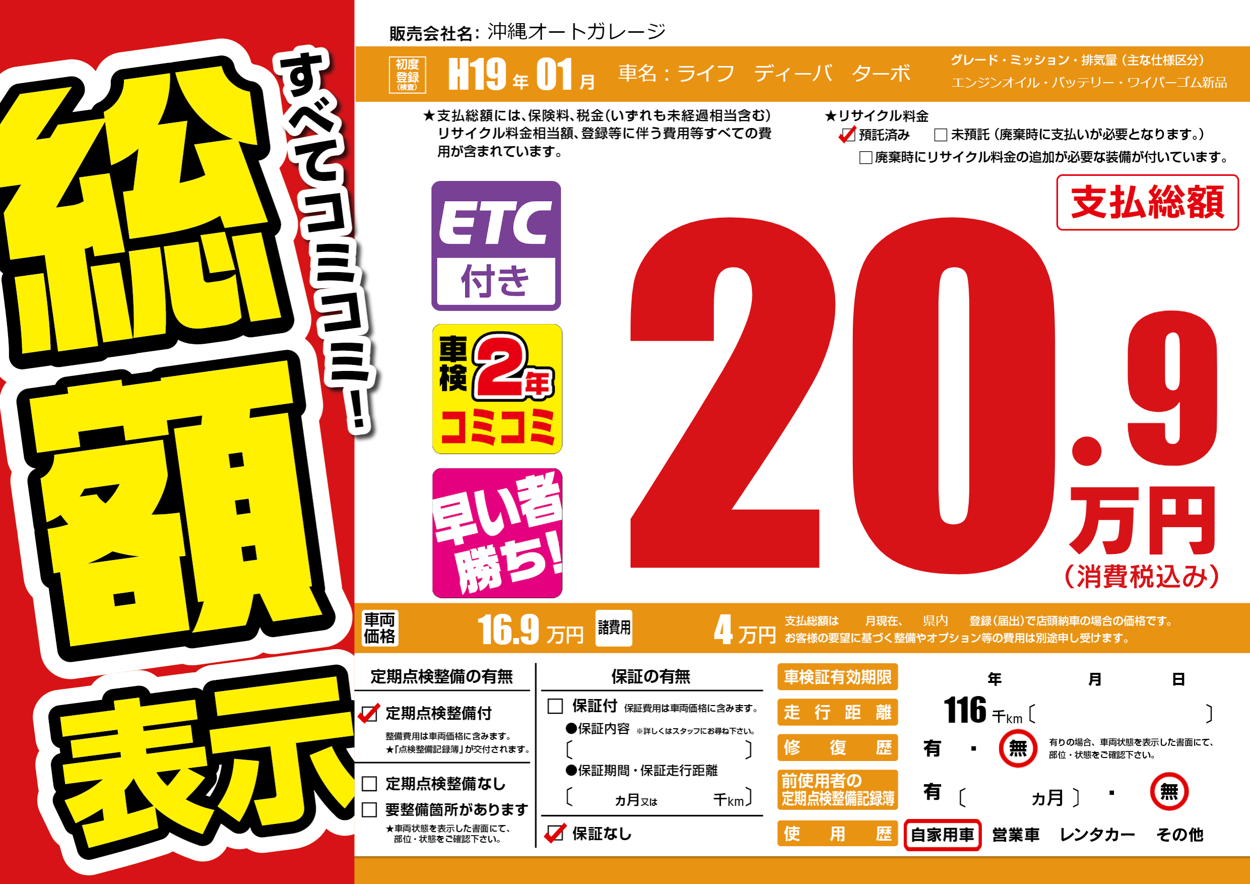 | 車名 | 車名:ライフ ディーバ ターボ | グレード ミッション 排気量 |