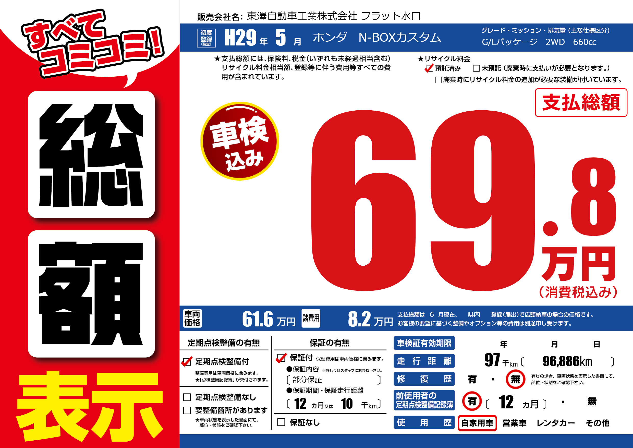 | 車名 | ホンダ N-BOXカスタム | グレード ミッション 排気量 |