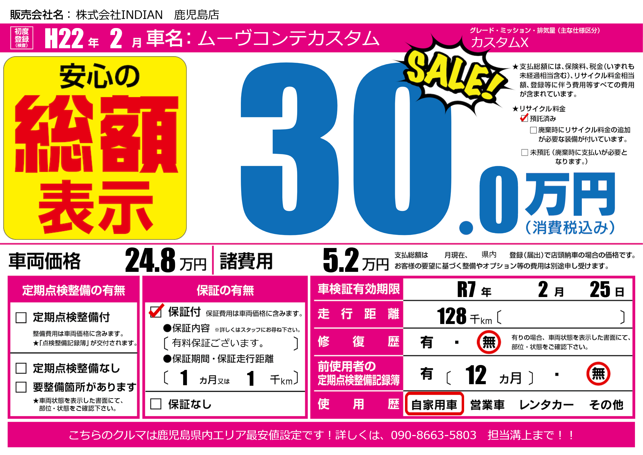 | 車検制限 | R7年 2月 25日 | ||