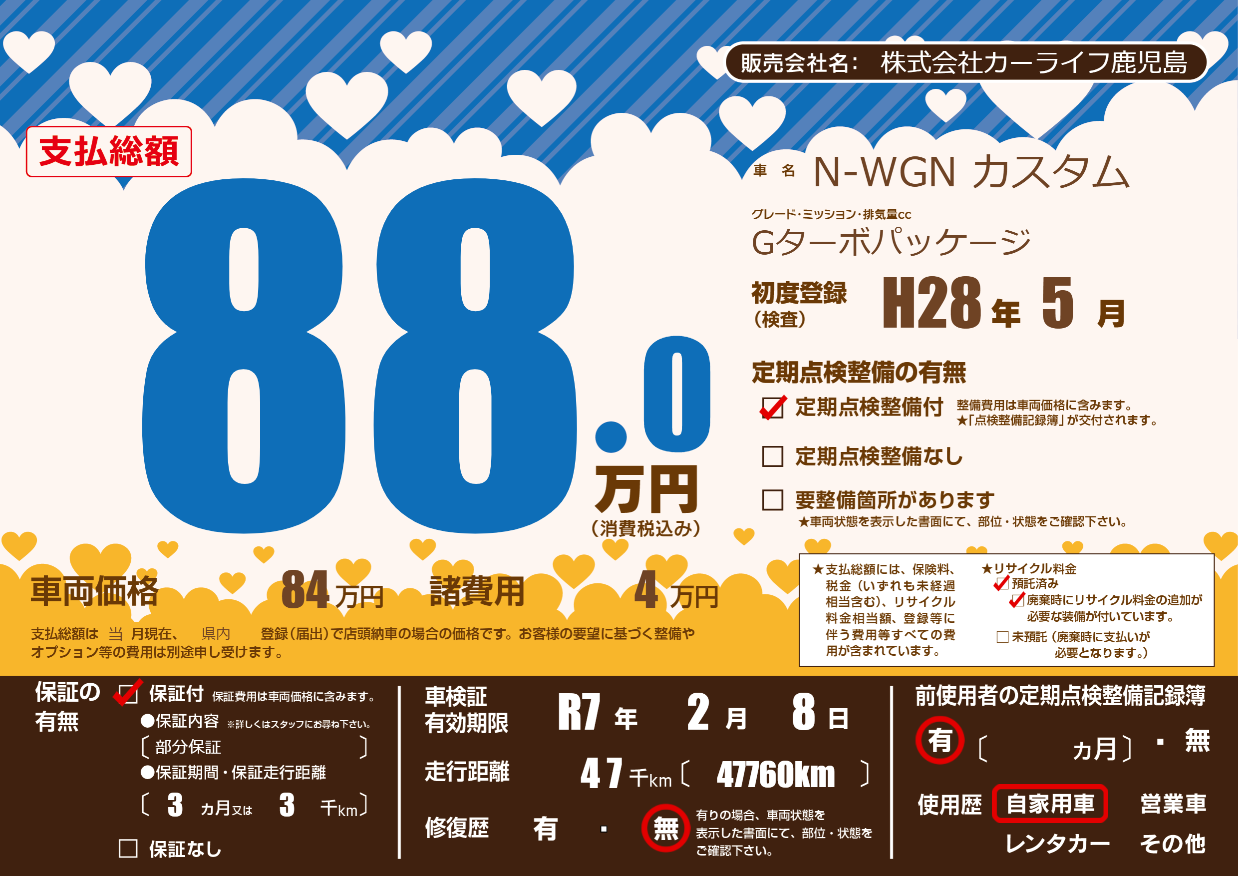 | 車名 | N-WGN カスタム | グレード ミッション 排気量 |