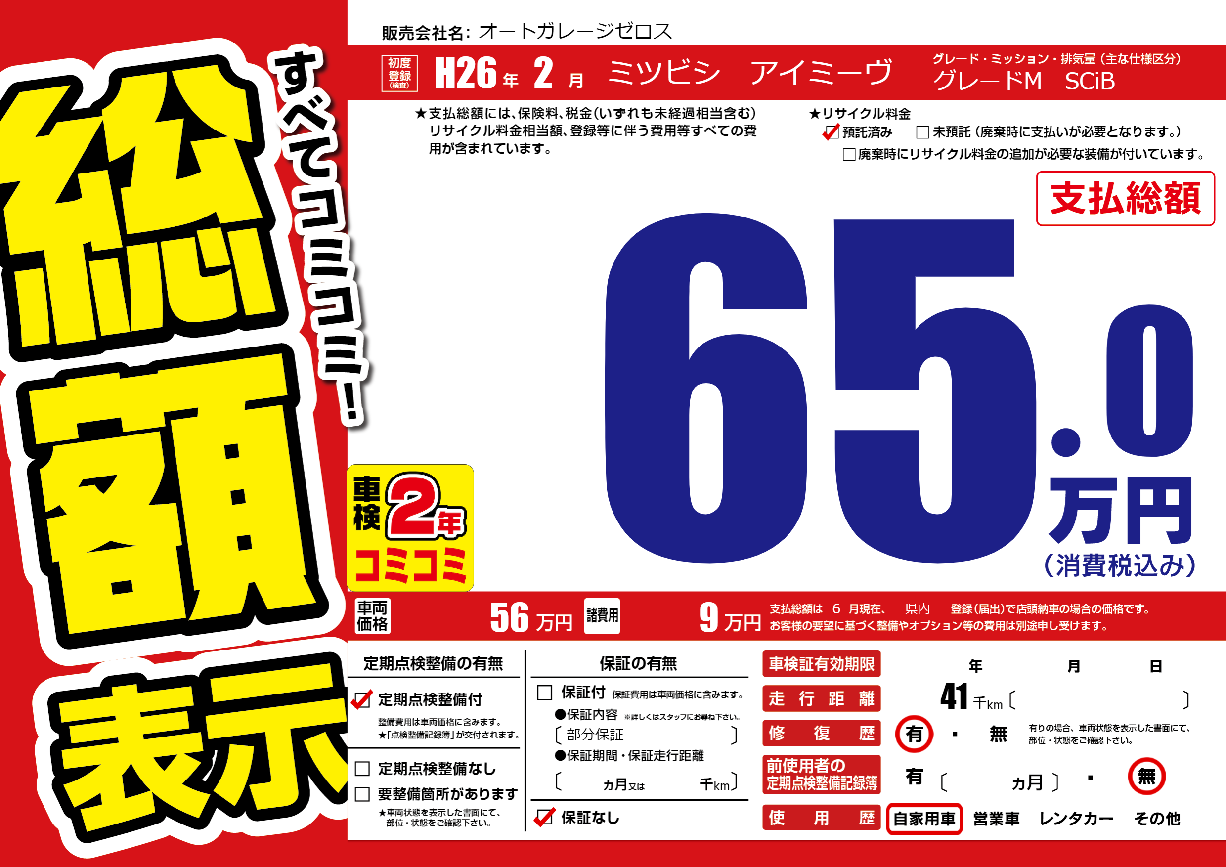 | 車名 | ミツビシ アイミーヴ | グレード ミッション 排気量 |