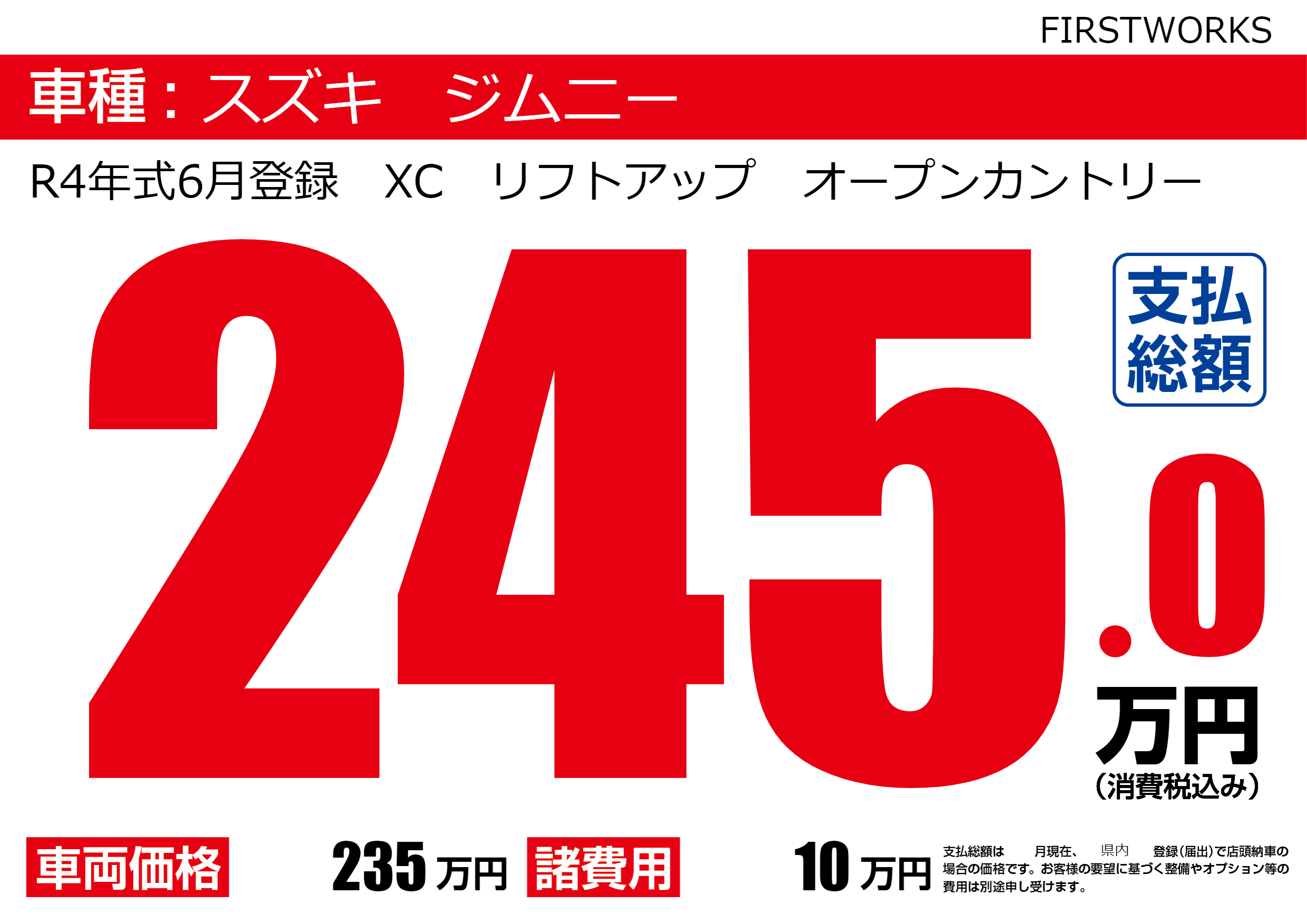 R4年式6月登録 XC リフトアップ オープンカントリー |