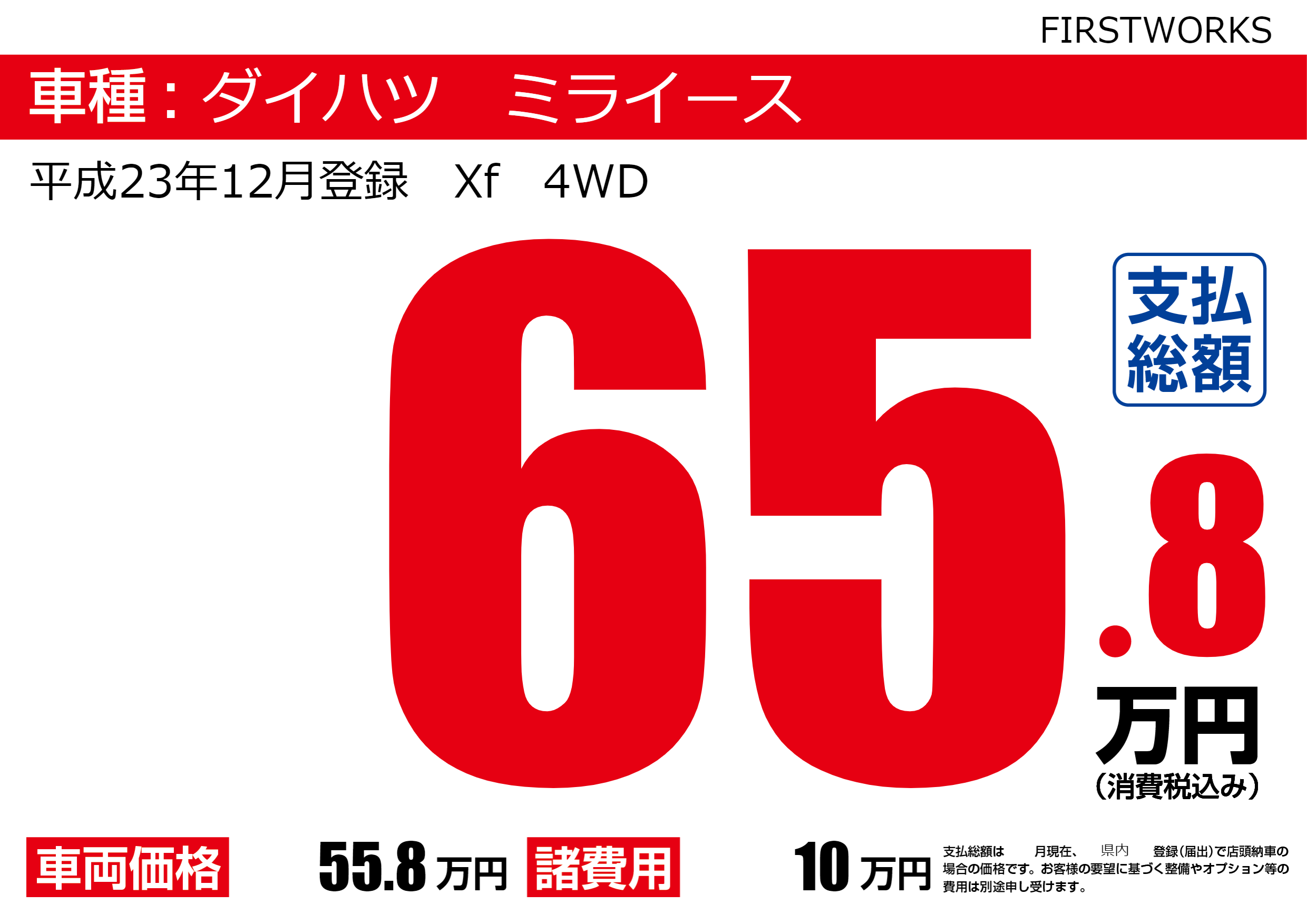 | 車名 | ダイハツ ミライース | グレード ミッション 排気量 |