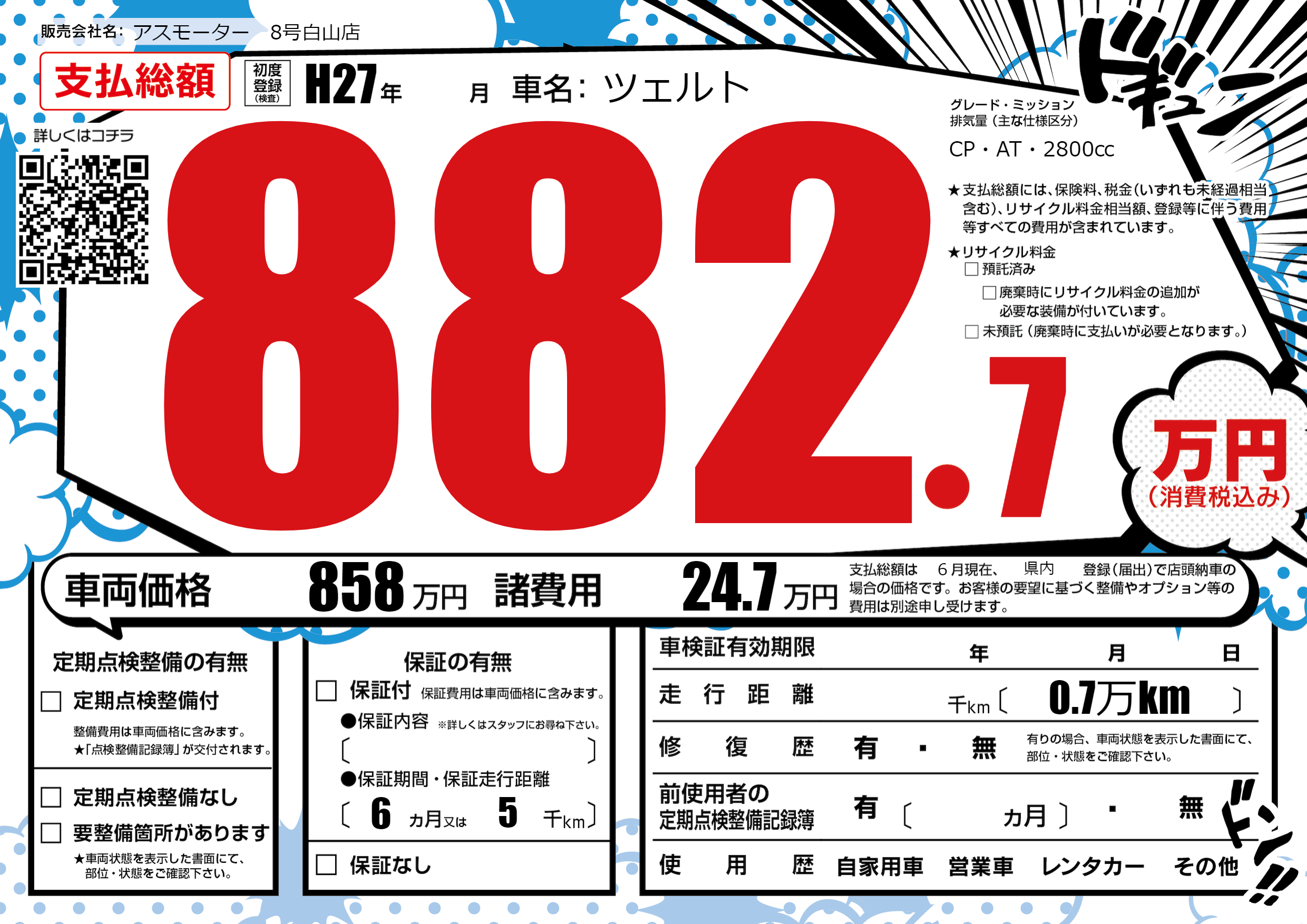 | 走行キロ | - | 初年度登録 | H27年---月 |