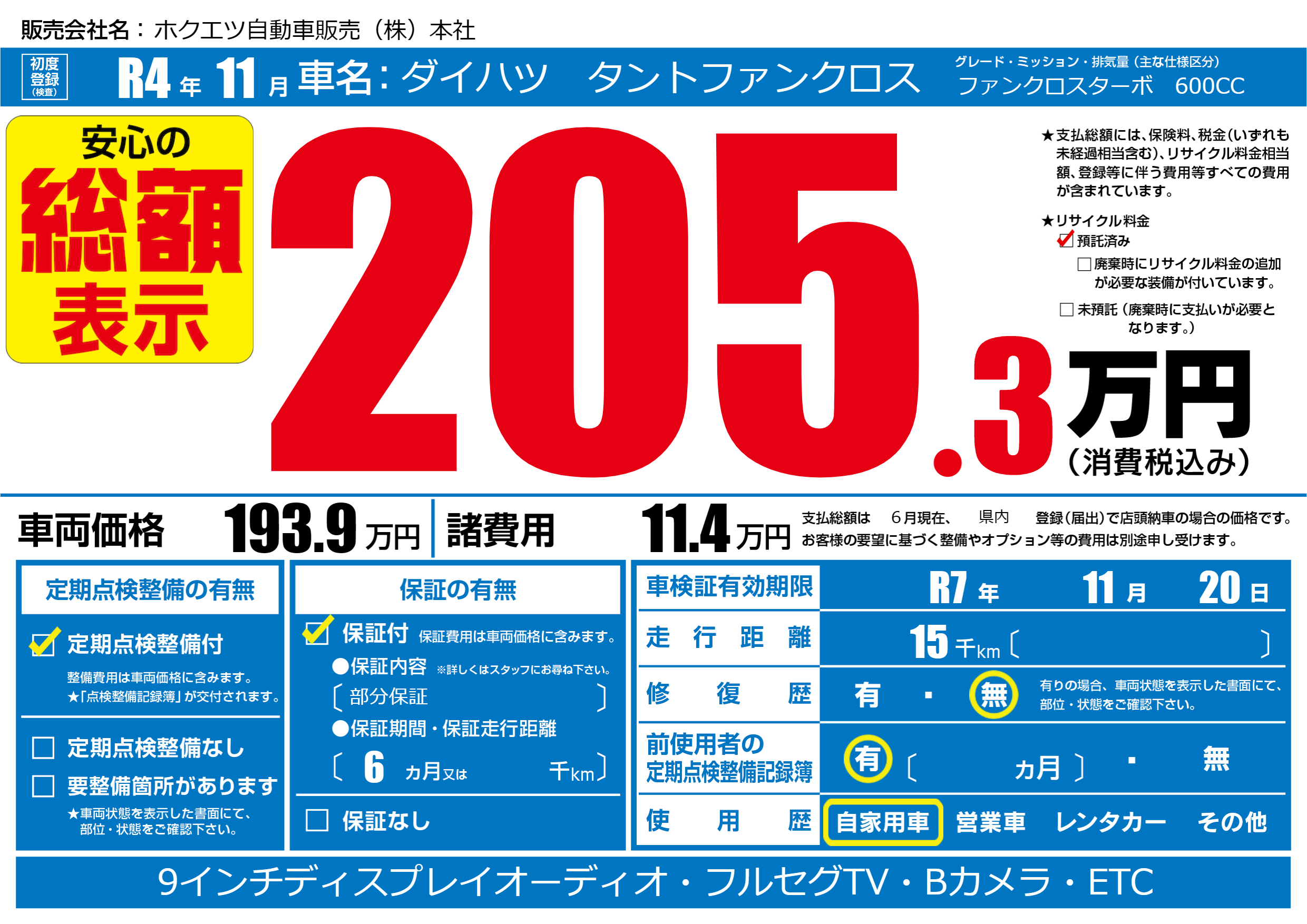 なし | 車検制限 | R7年11月20月 |