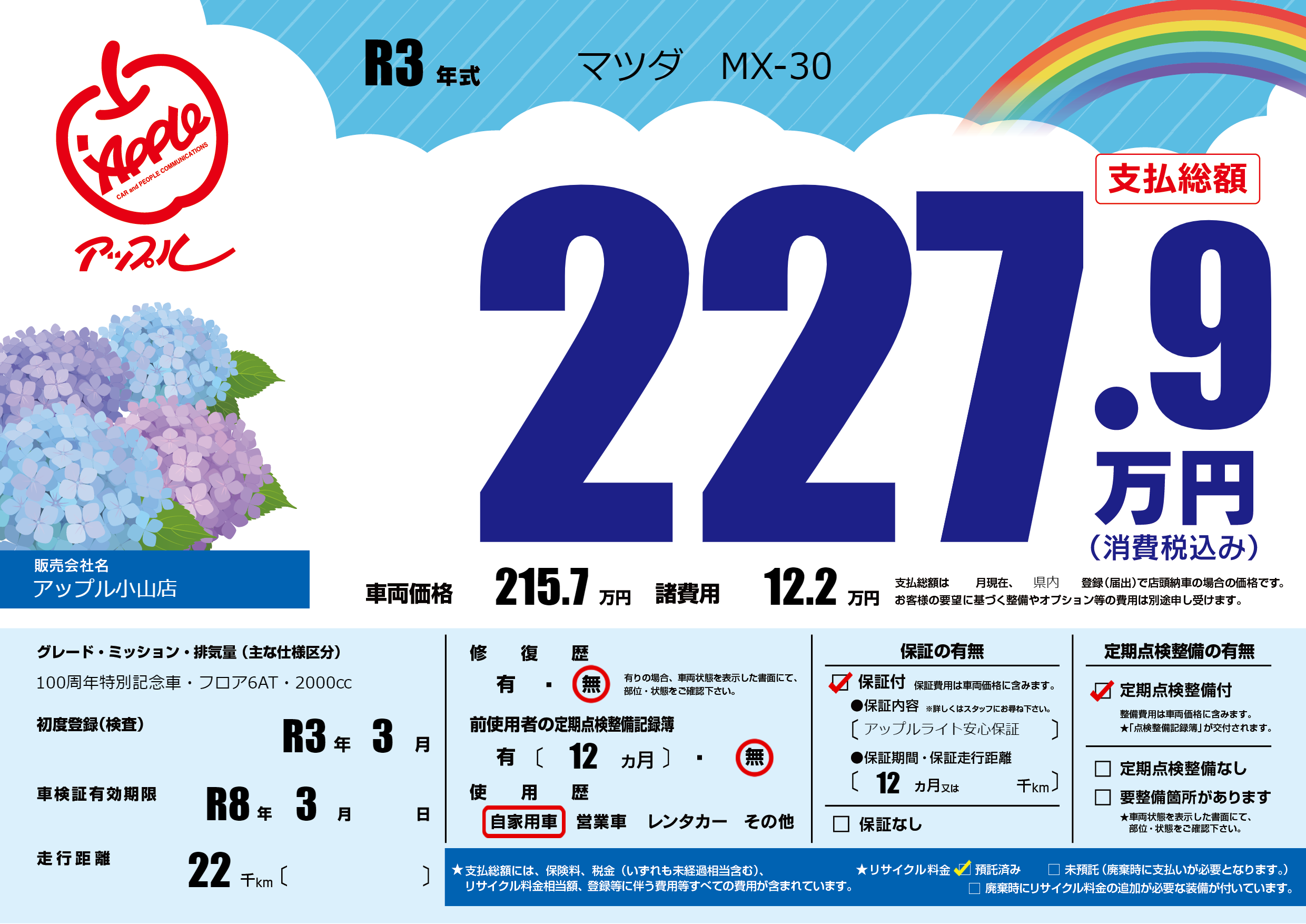 保証内容(アップルライト安心保証) 12ヶ月または千km