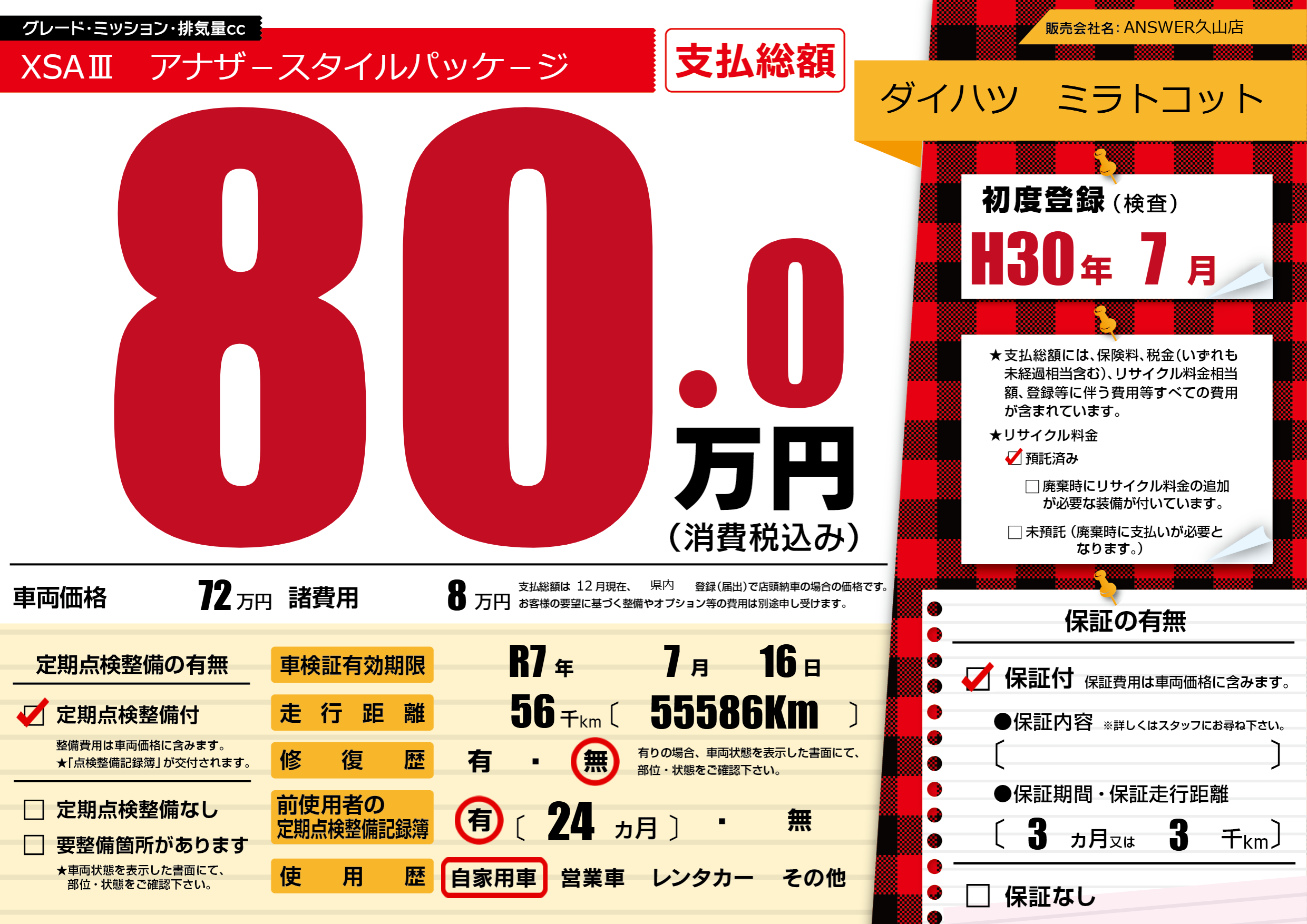 | 初年度登録 | H30年7月 | ||