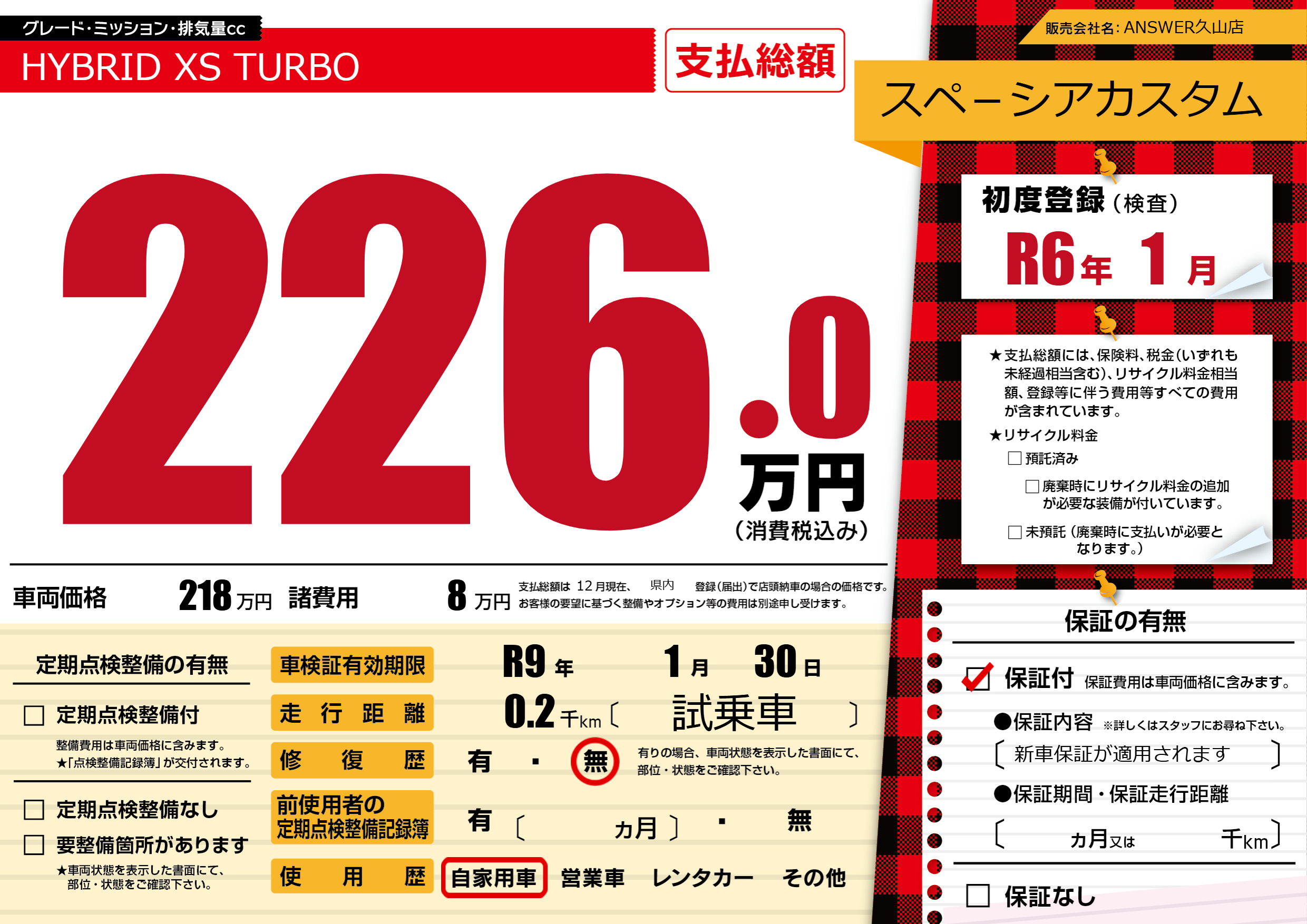なし | 車検制限 | R9年1月30月 |