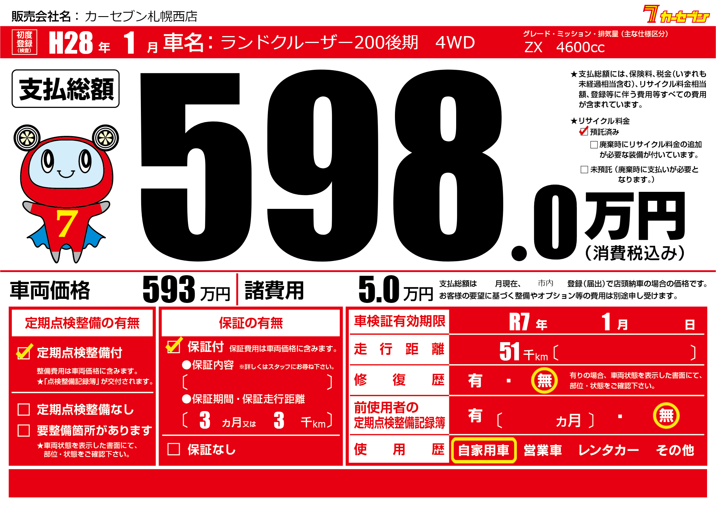 | 車名 | ランドクルーザー200後期 4WD | グレード ミッション 排気量 |
