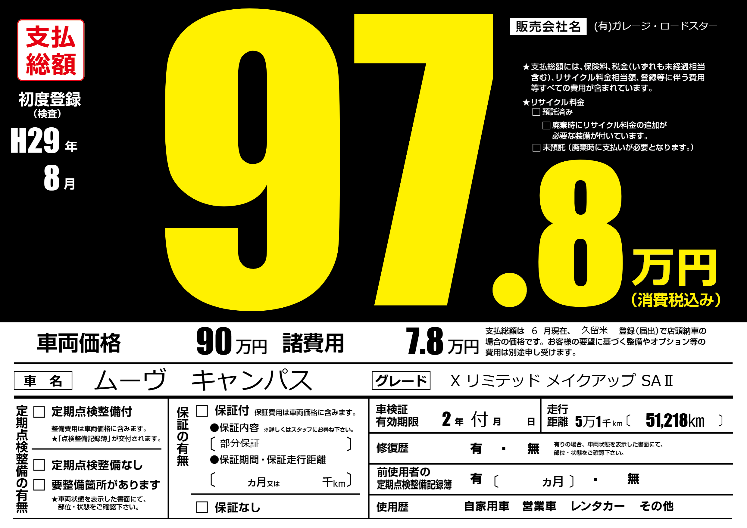 | 車名 | ムーヴ キャンパス | グレード ミッション 排気量 |