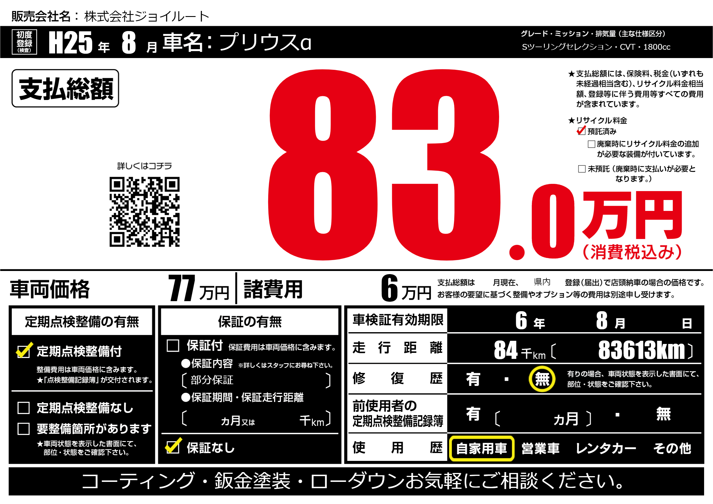 | 走行キロ | 8.4万km | ||