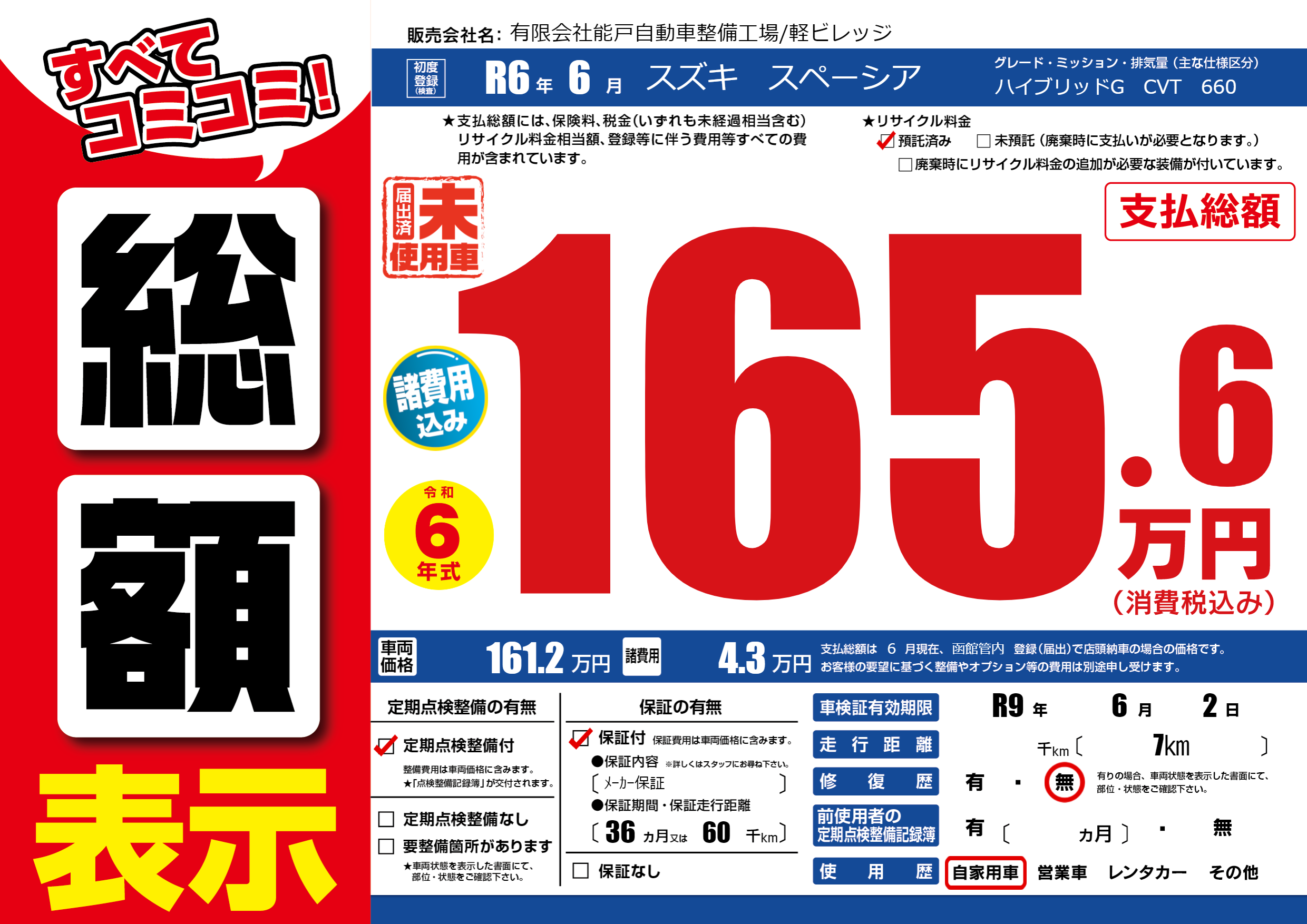なし | 車検制限 | R9年6月2月 |