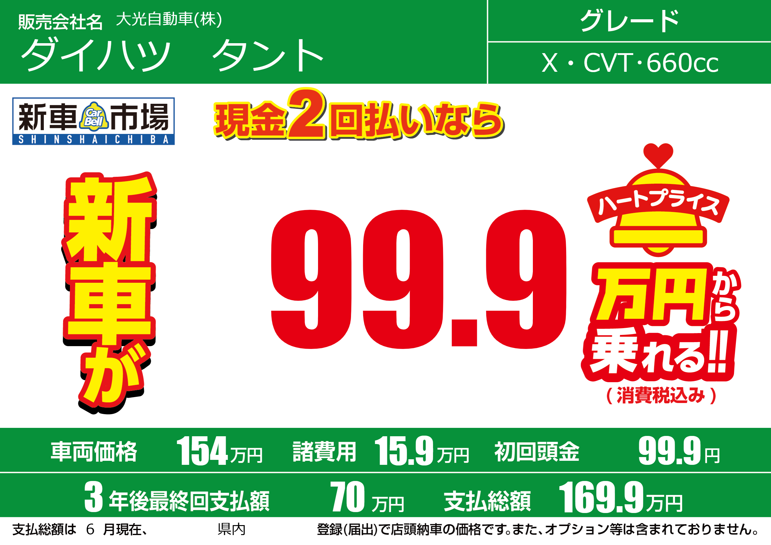 | 車名 | ダイハツ タント | グレード ミッション 排気量 |