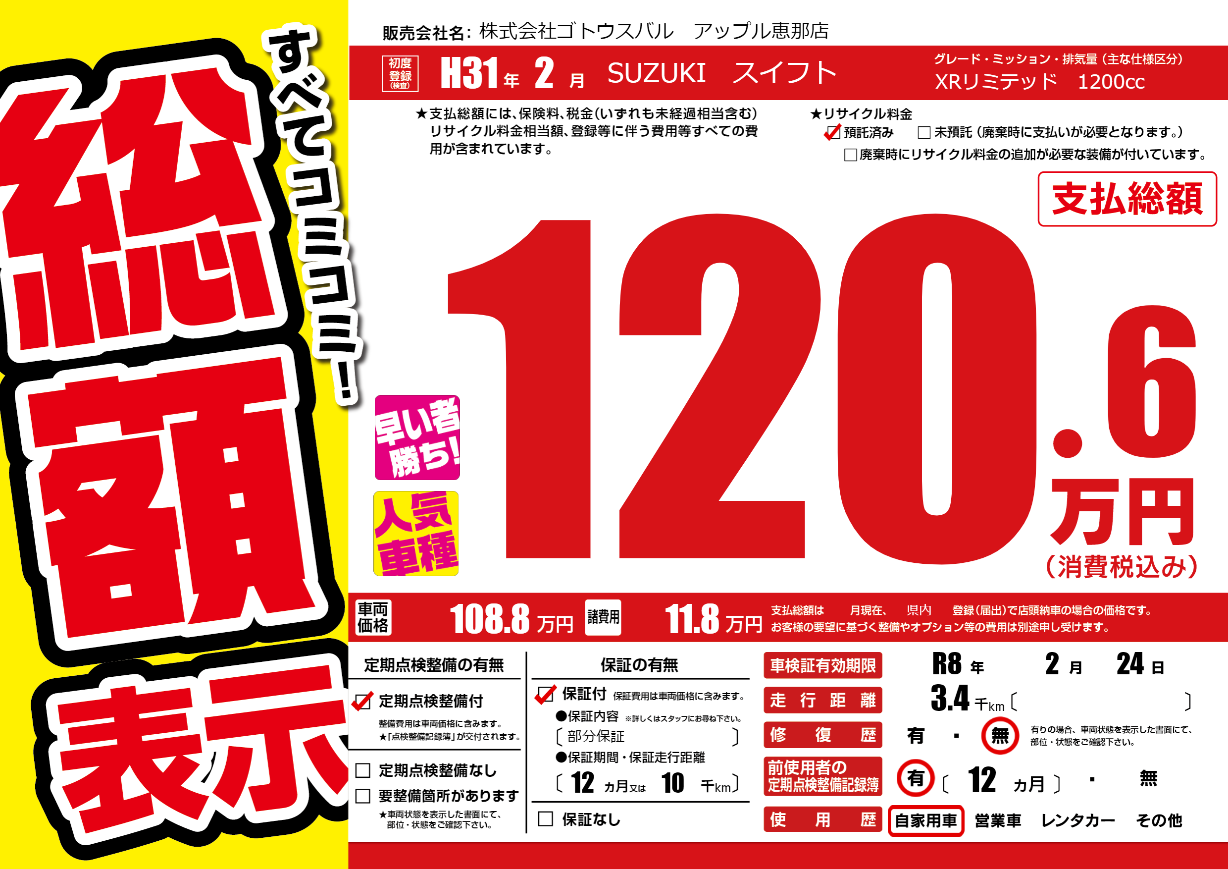 | 車検制限 | R8年 2月 24日 | ||